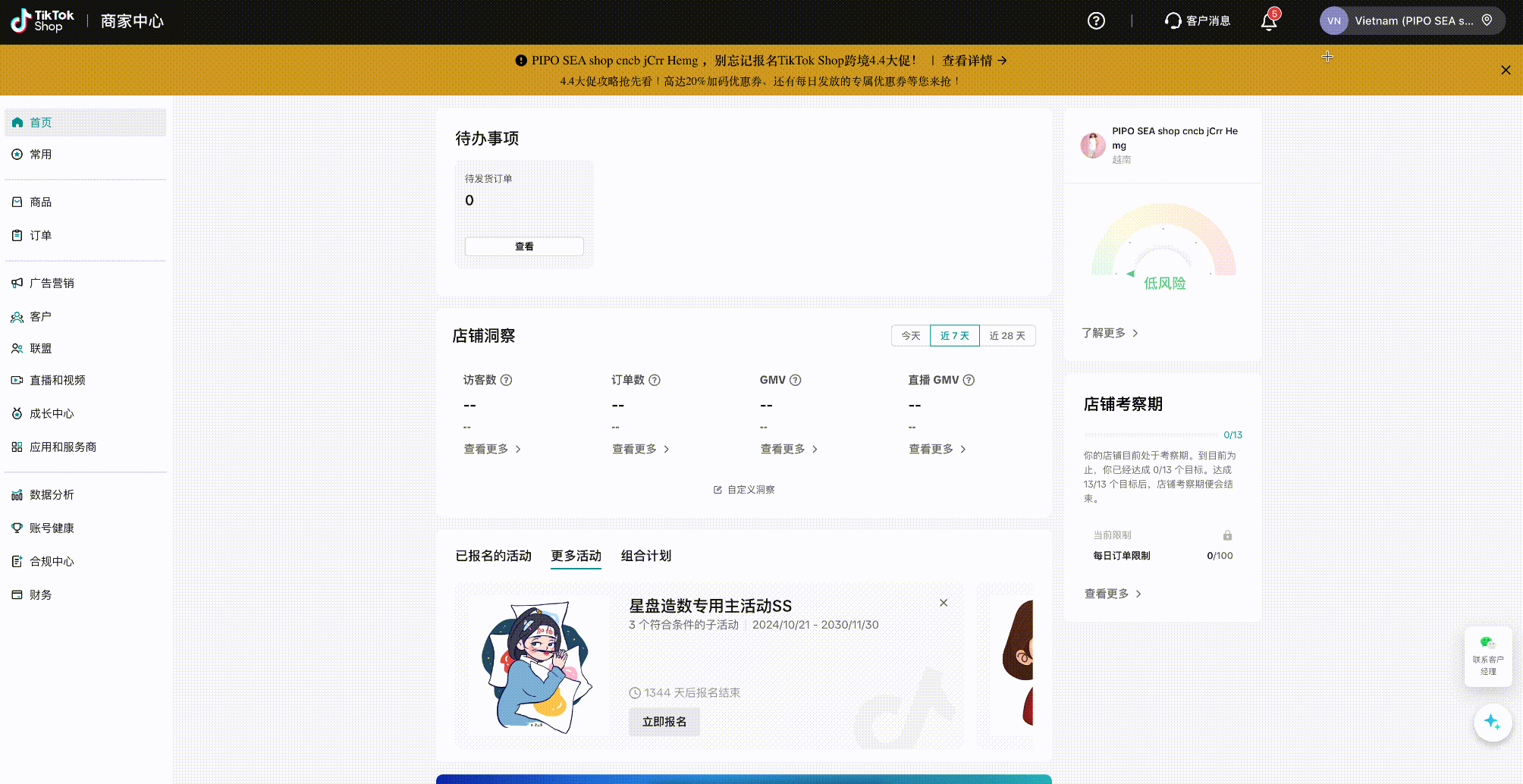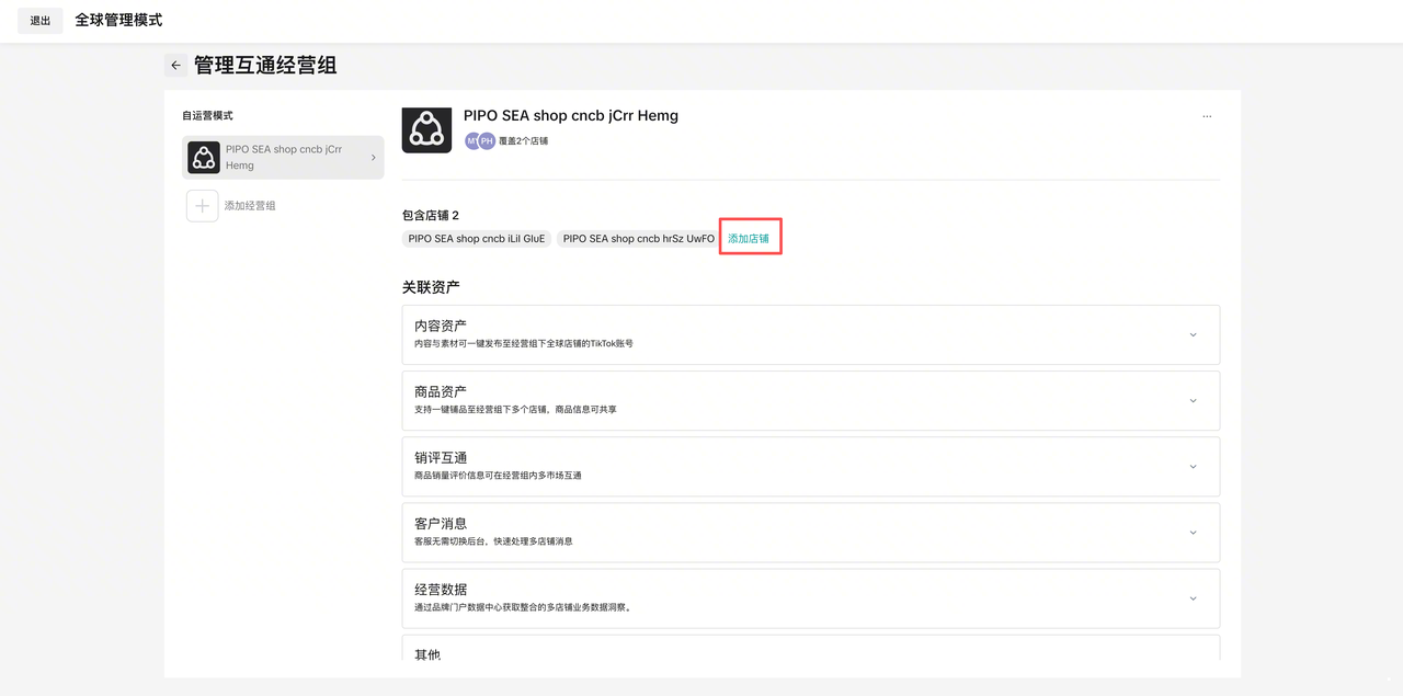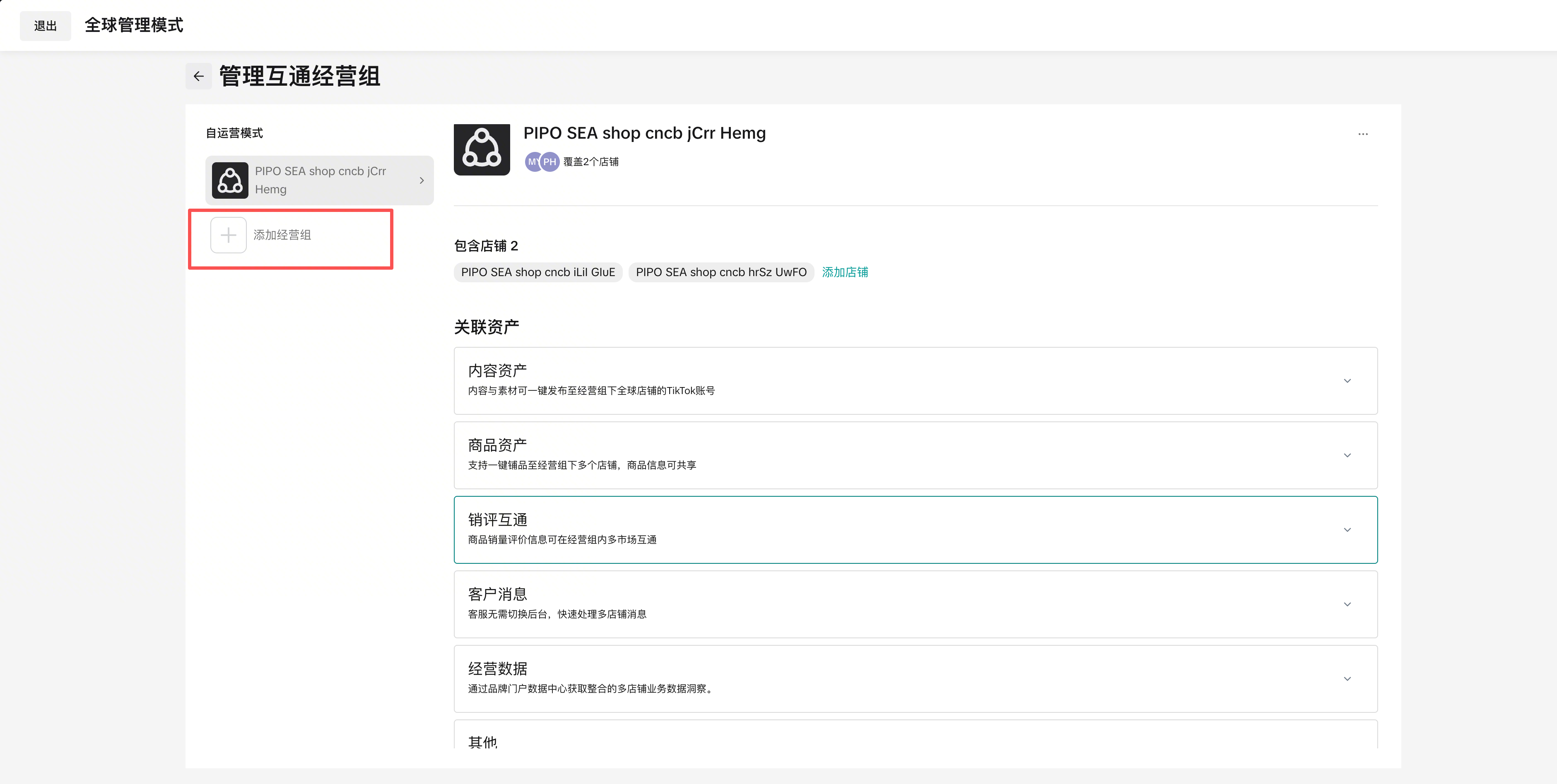 经营组 = 不同账号或不同主体资质的TikTok shop店铺,绑定后形成的一个“店铺组”。