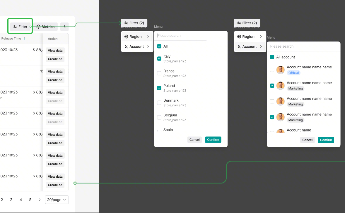 主管在成员管理模块,管理客服在所有店铺&国家的权限。客服需要用同一个email/phone number注册不同店铺下的子账号