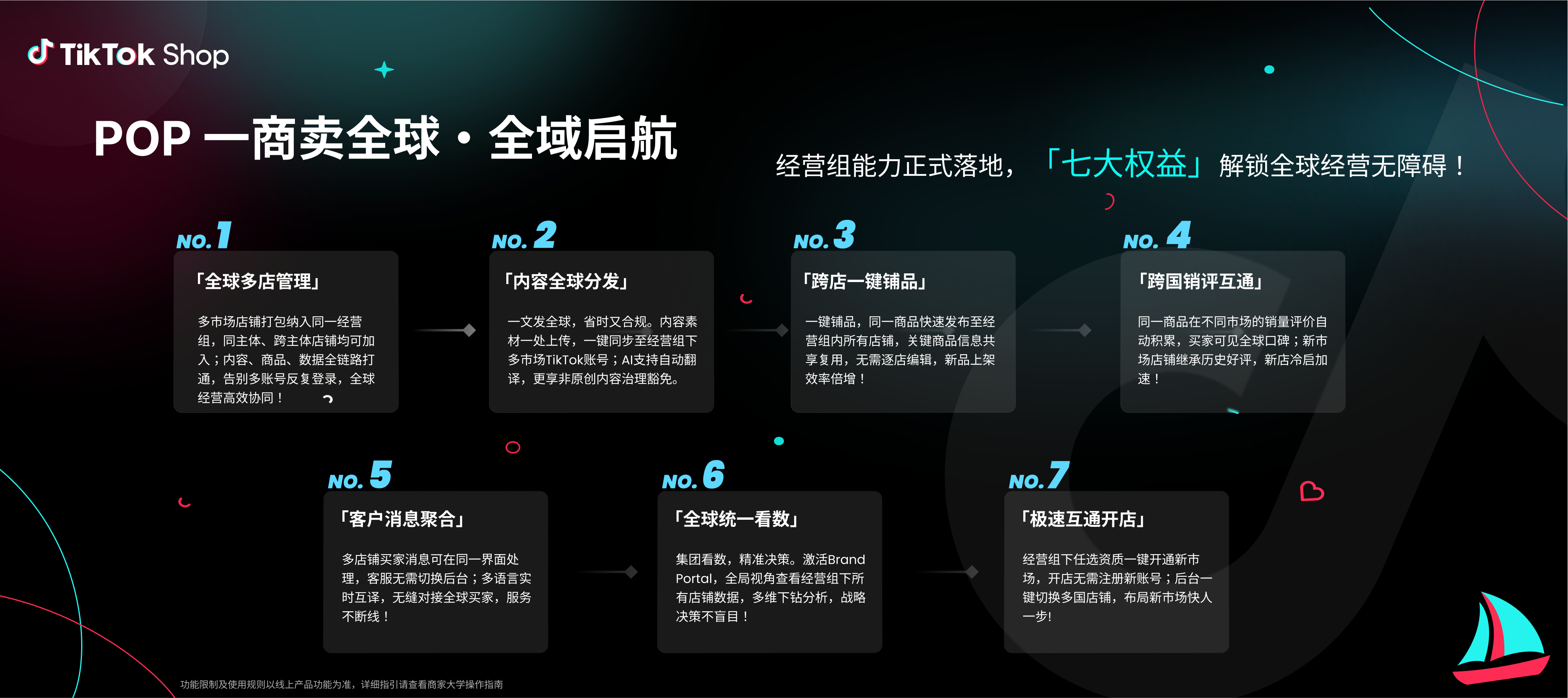 TikTok Shop「一商卖全球」重磅上线,以「经营组」为核心载体,专为多店经营商家整合全链路提效能力,全面覆盖日常管理、内容分发、跨国铺品、买家回复、数据洞察、极速开店全链路场景,为多主体多店商家打造一站式全球经营解决方案!