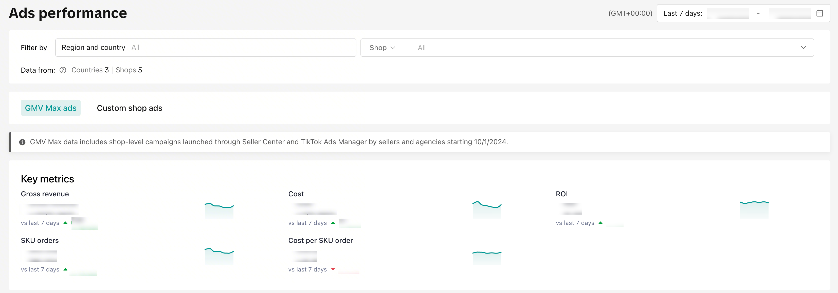 ![]() ![]() | – 全局广告投放概览 – 在 Brand Portal 中概览全球广告投放及核心KPI,让您了解广告投放的整体状况和效率. – 汇总GMV Max广告以及历史TikTok Shop Ads(如Video Shopping Ads、LIVE Shopping Ads、Product Shopping Ads)的投放表现,帮助品牌了解整体广告投放情况与投放效率。 |