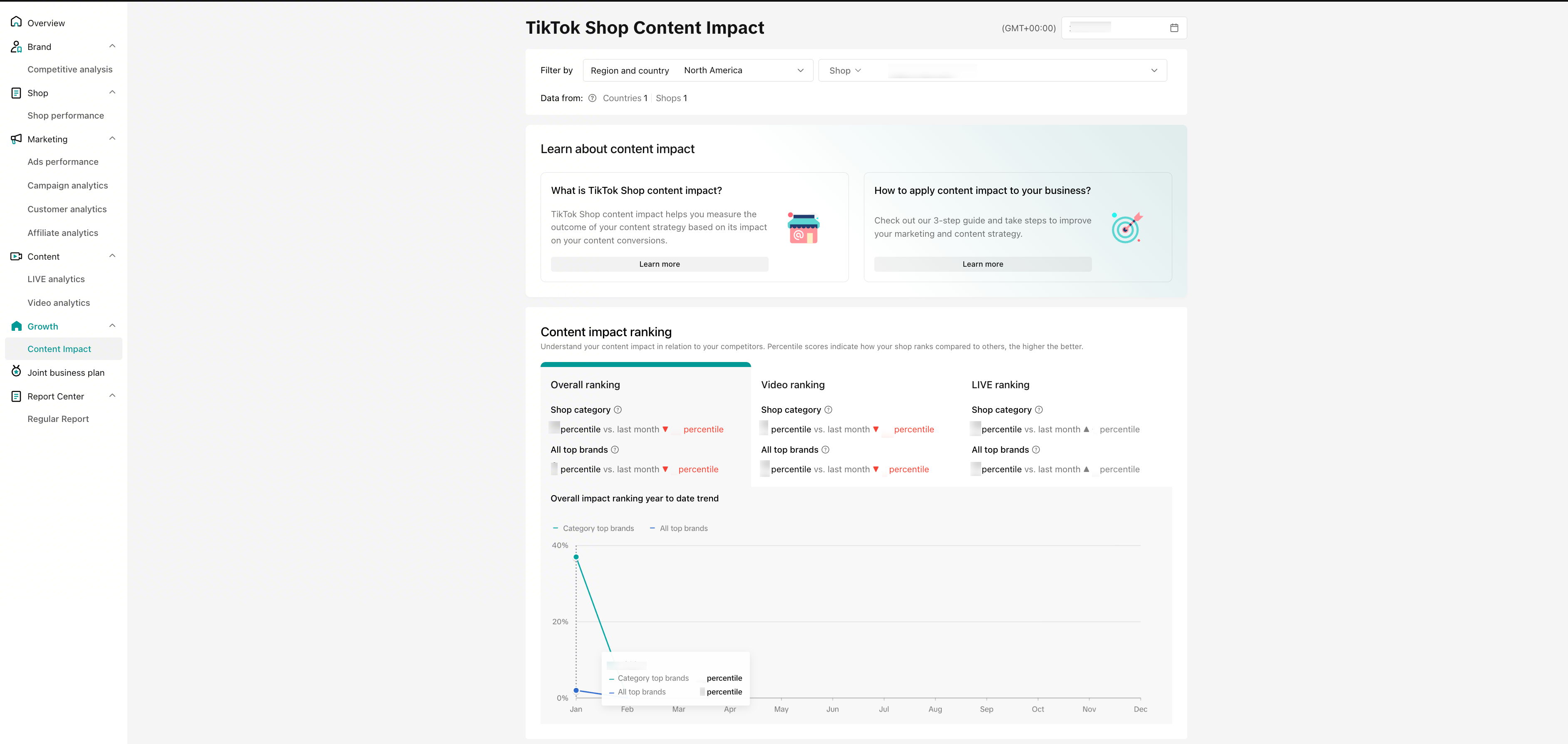 ![]() ![]() ![]() ![]() | – 内容影响力排行 从内容力视角出发,帮助商家分析和发现高互动以及潜在的高转化内容,也可以搭配GMV趋势快速看出每个月的影响力变化来自于内容数量还是质量。 – 内容影响力排名 使用我们的专有模型系统地评估您的TikTok Shop内容,该模型会衡量每个内容对整体内容转化能力的贡献。展示店铺在商家类目以及品牌商家里的排名和同比变化。 – 体裁和影响力拆解 拆分商家和联盟内容,提供类目基准对比,方便商家根据内容类型和表现制定相应的策略。例如,该店铺的内容转化主要来自于直播还是视频,主要来自于达人直播还是商家自播。 – 可执行的洞察 深入研究排名前十的内容,提供内容质量指标,提供类目基准对比,获取动态推荐动作以持续优化效果。 |