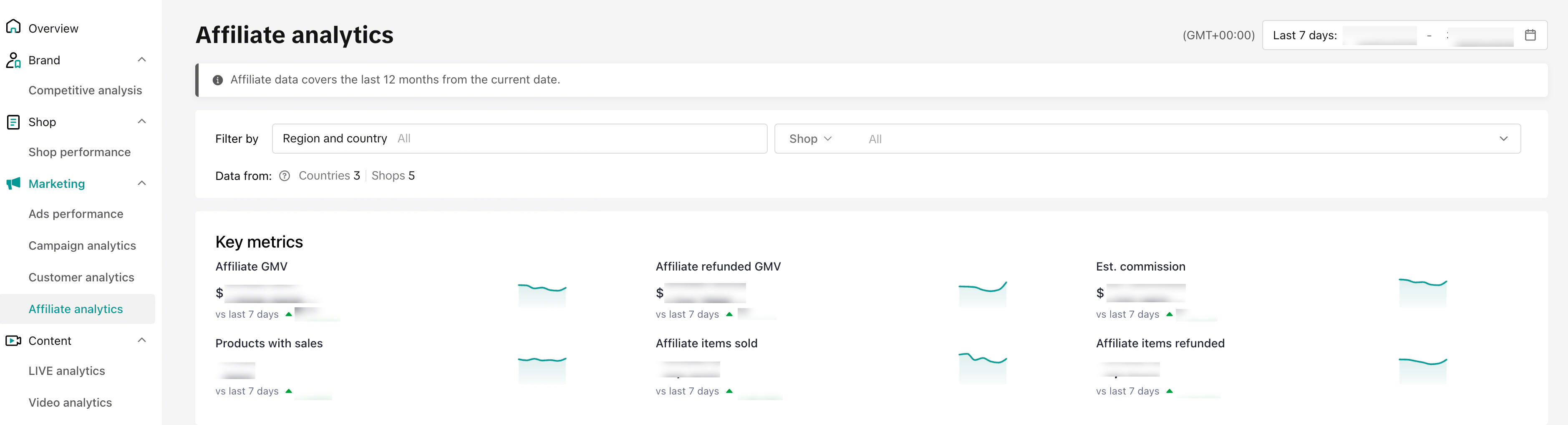 Brand Portal 中所有数据以 GMT+0 时区和美元 (USD) 显示,以便您汇总所有全球店铺的数据。