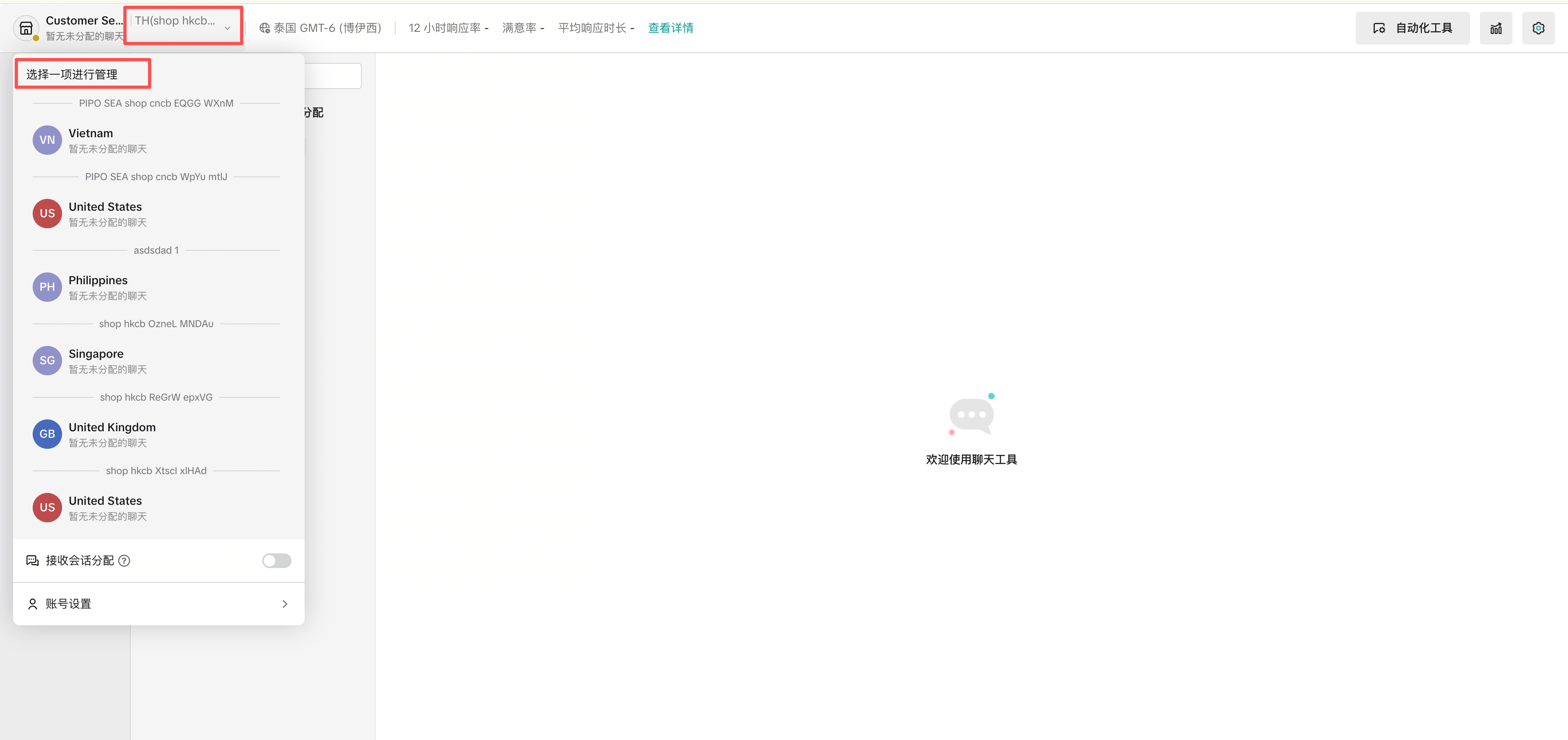 当您从 Seller Center(商家中心)进入客户消息页面时,将默认打开主站正在处理的店铺。
