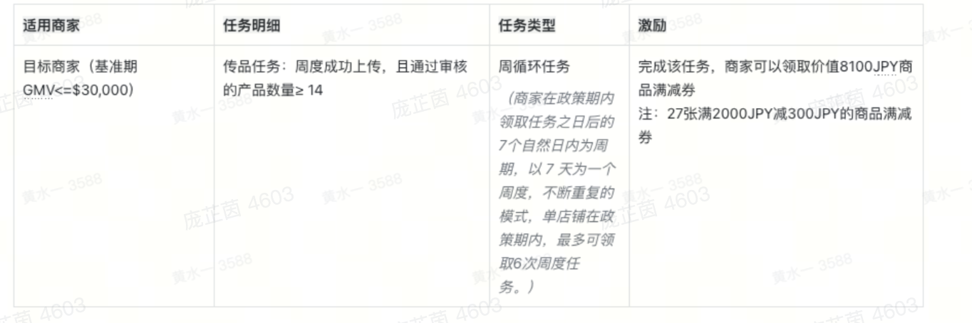货品补贴​– JP:完成指定投稿/带品/营销活动,最高获得 114.3K (折合$750)日元商品满减券​商家任务后台参与​