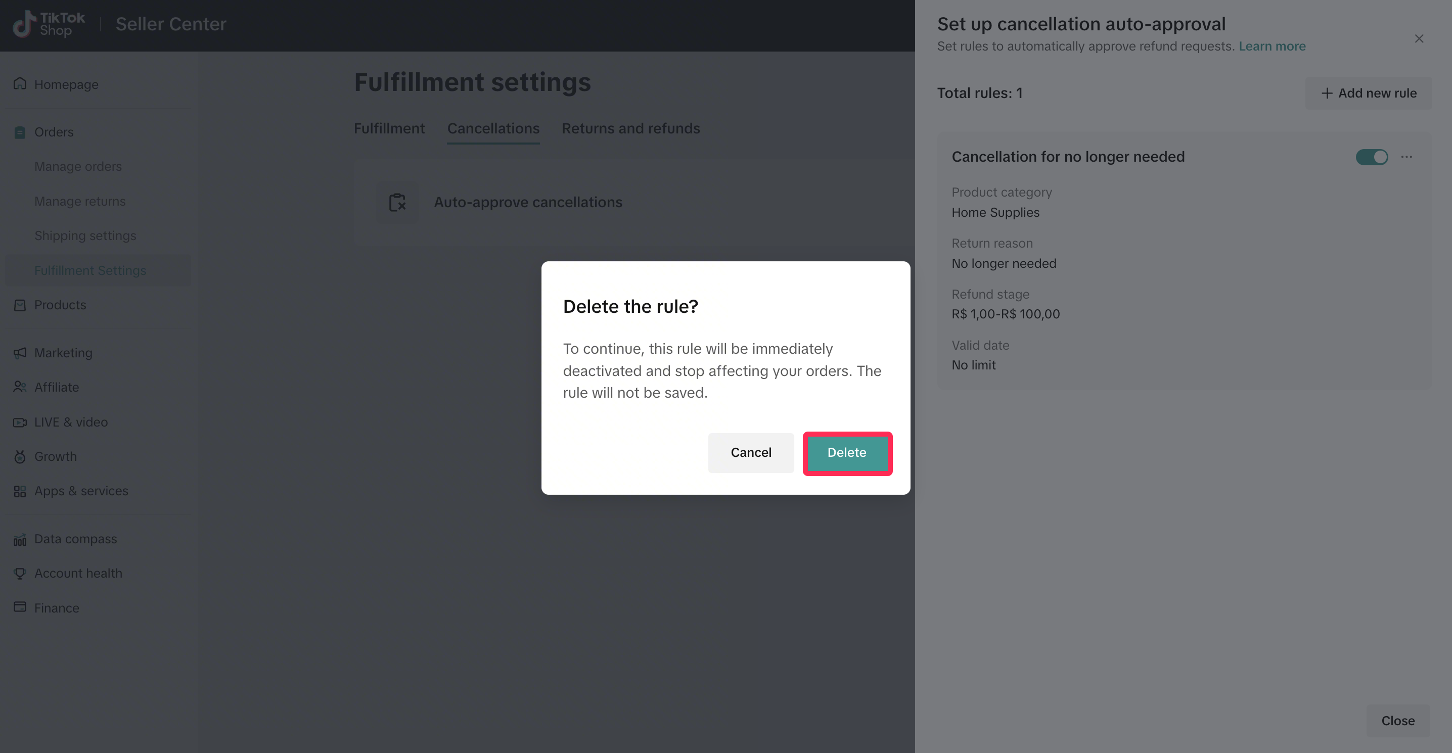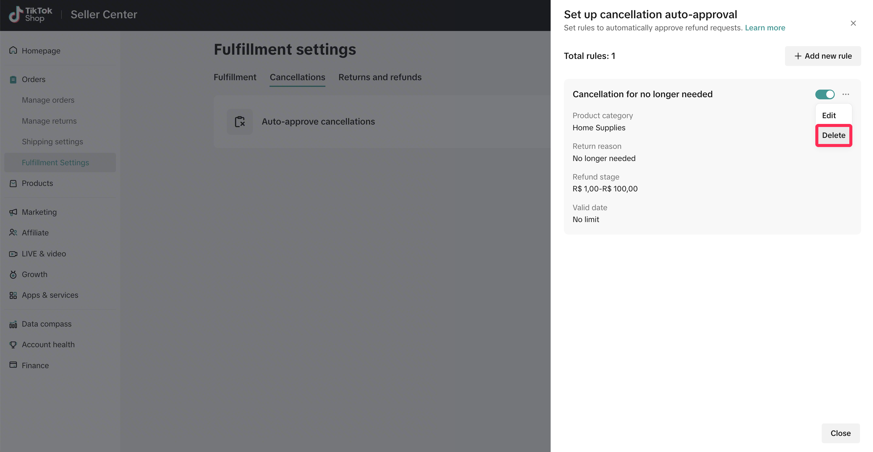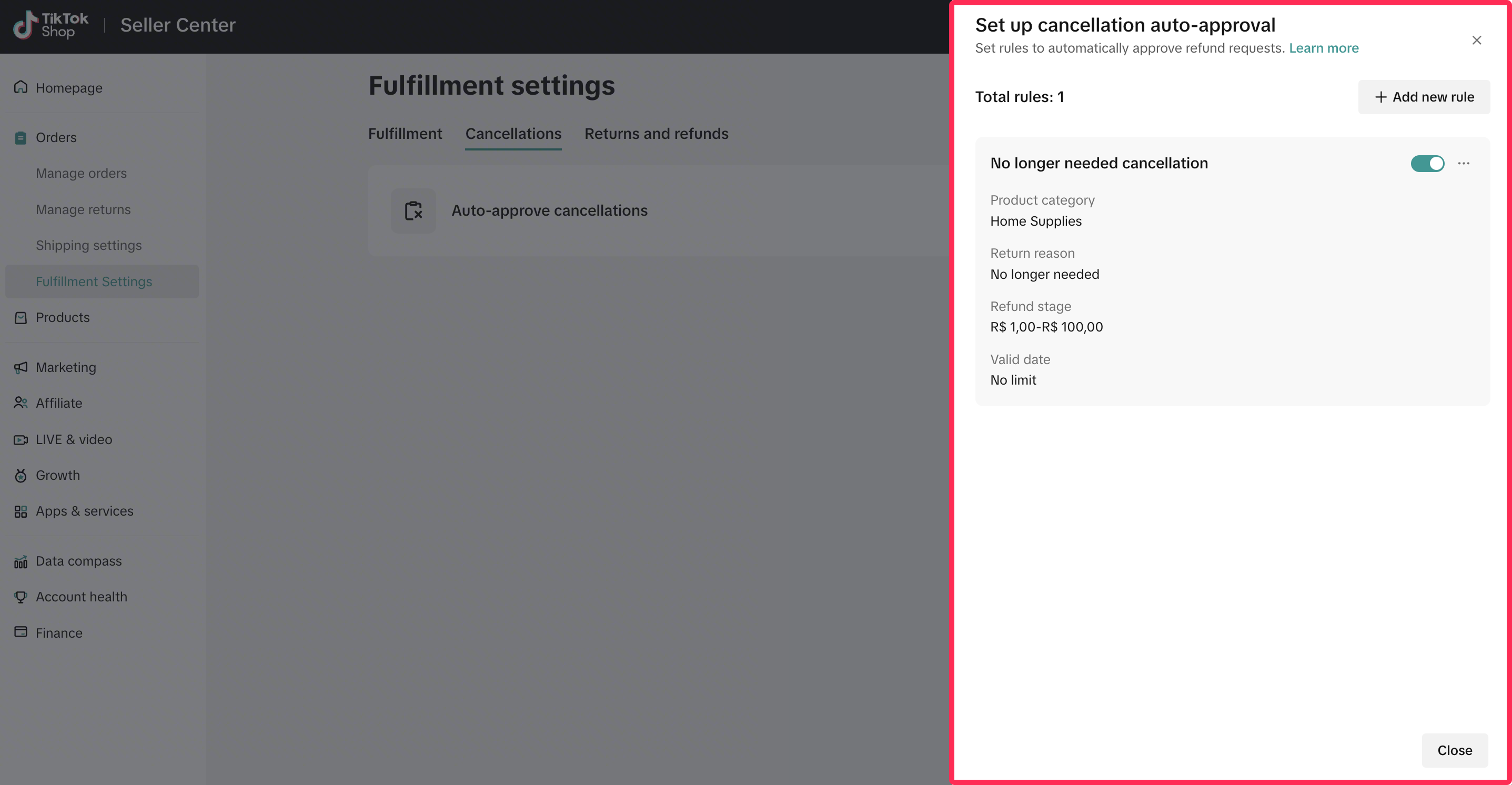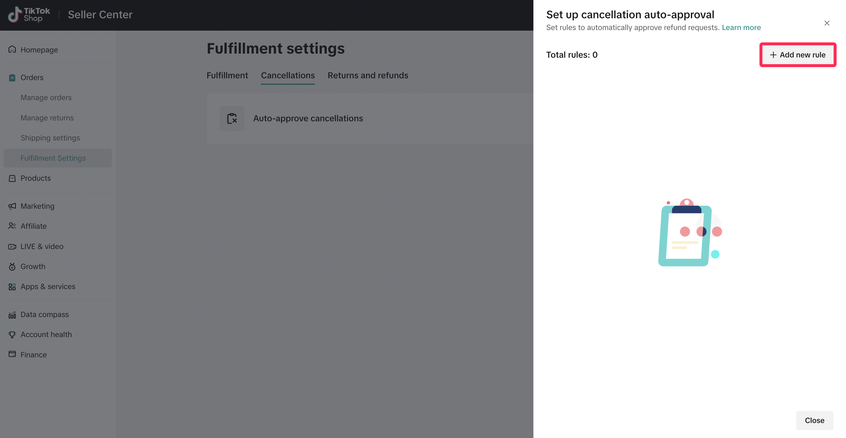 This article will provide you with a quick walkthrough on how to set up automated rules for accepting cancellation requests from buyers. By establishing these rules, when a buyer’s request matches the criteria you set, their request will be auto-approved, saving you time and eliminating the need for manual review.
