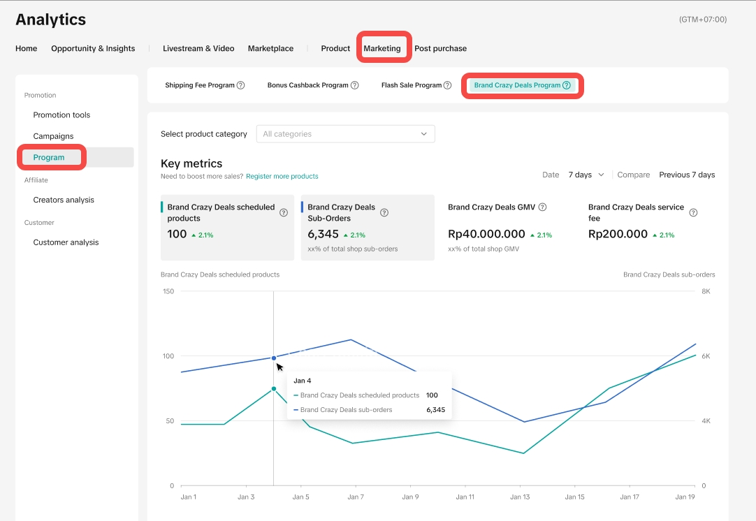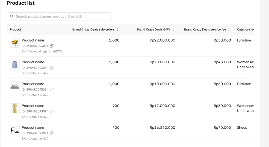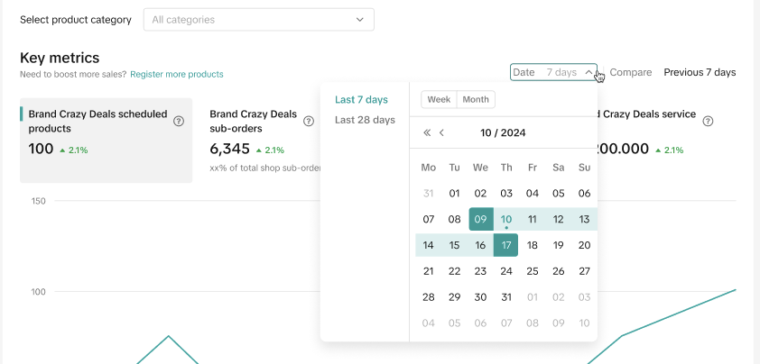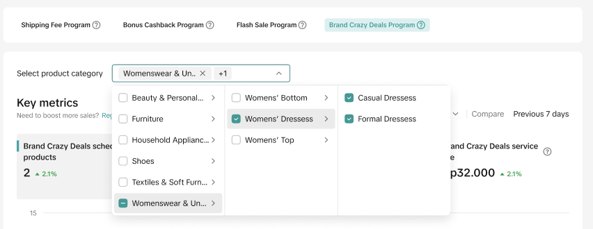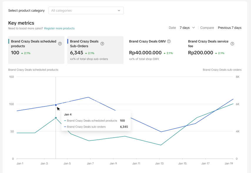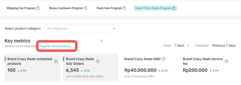 | Brands Crazy Deals 报名商品 | 所选时间段内参与Brands Crazy Deals计划的商品数量。 |