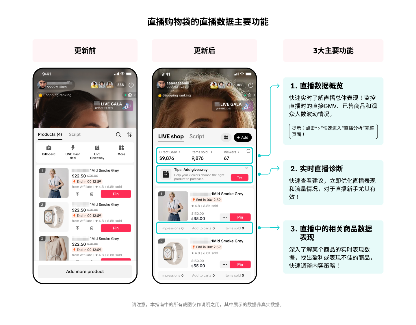 直播购物袋的直播数据主要功能