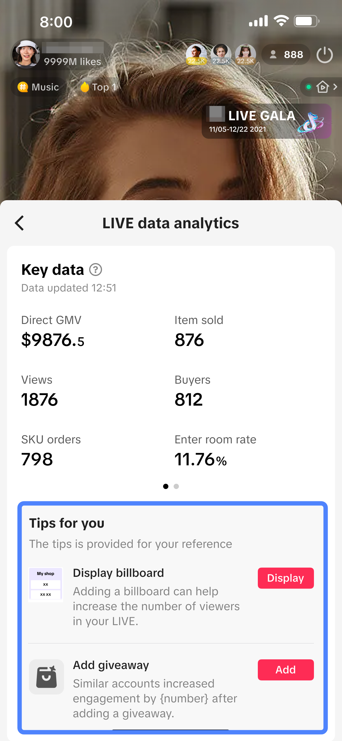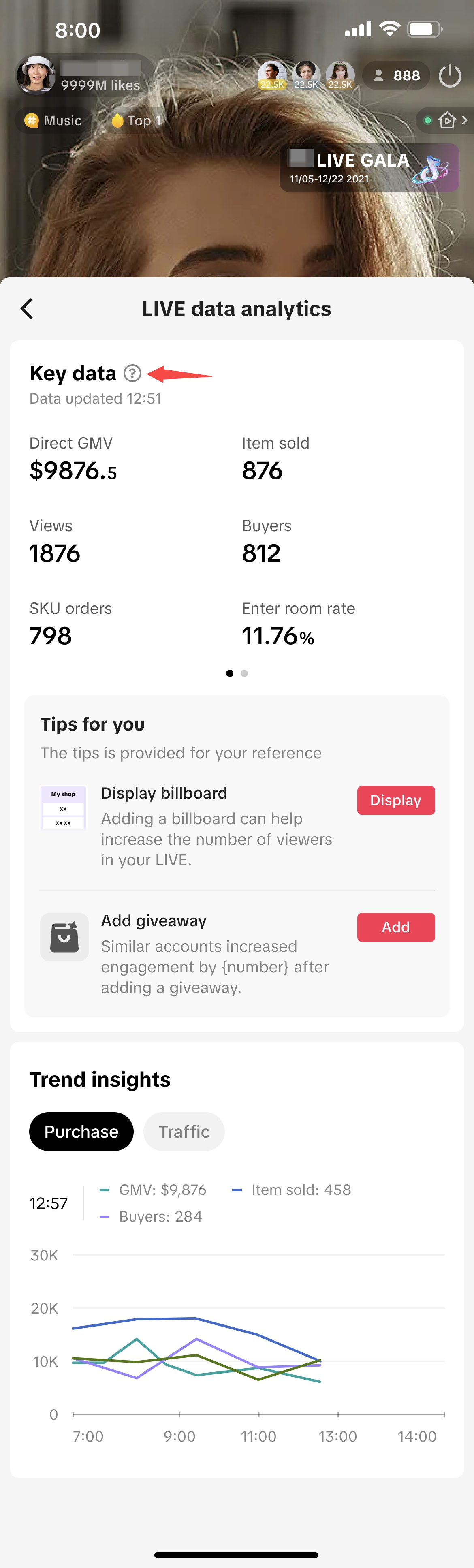 对于积极开播的达人而言,查看直播表现的实时数据对于了解当前直播表现并快速采取相应措施优化直播非常有效!