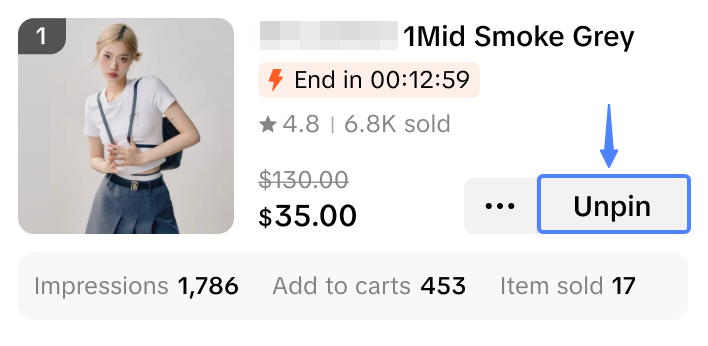 ![]() ![]() | 直播中的相关商品数据表现 除了能使用“直播数据概览”功能外,还可以深入了解直播中的商品的实时表现数据! 查看以下商品表现指标: – 曝光量:直播视频中某商品的曝光量,包括商品列表和商品卡片。 – 加入购物车:观众将商品加入购物车的数量。 – 已售商品:已售商品的数量。 这些数据有助于您了解盈利或表现不佳的商品,从而快速调整内容策略! – 建议示例:如果A商品的观看量和“加入购物车”数据正在增加,但用户还未下单,此时可以考虑采取限时促销策略或提示库存有限,制造紧迫感。 |