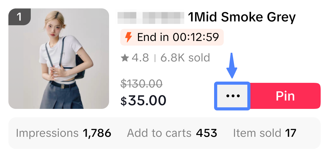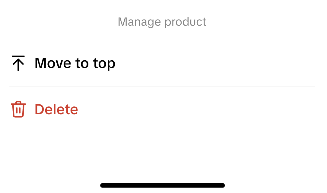 | 第1步: 点击商品界面的三个点 | 第2步: 点击“移动至顶部”或“删除” |