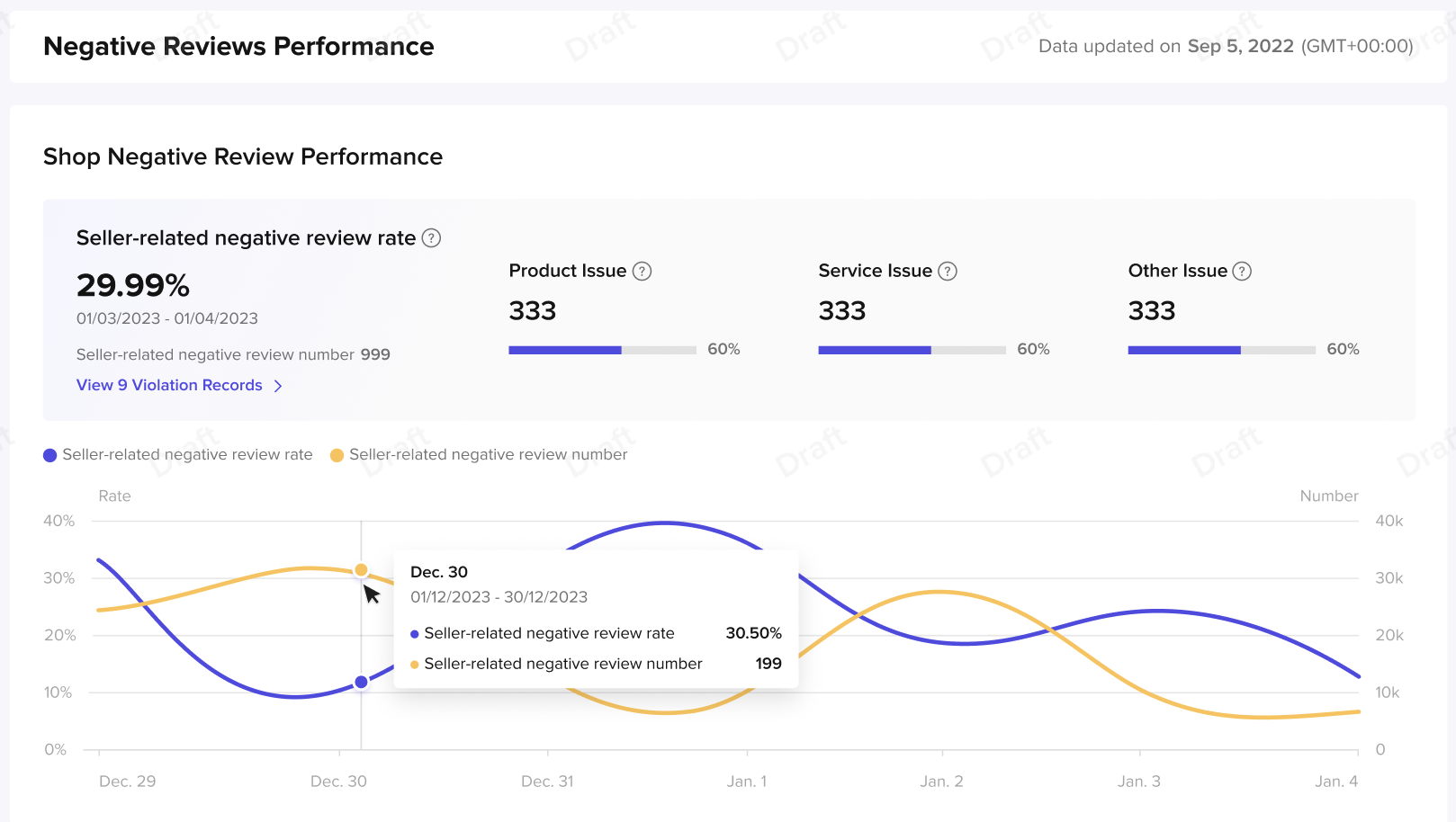 - 差评表现分析仅包含由于店铺责任导致的差评,shop health展示全部差评。
