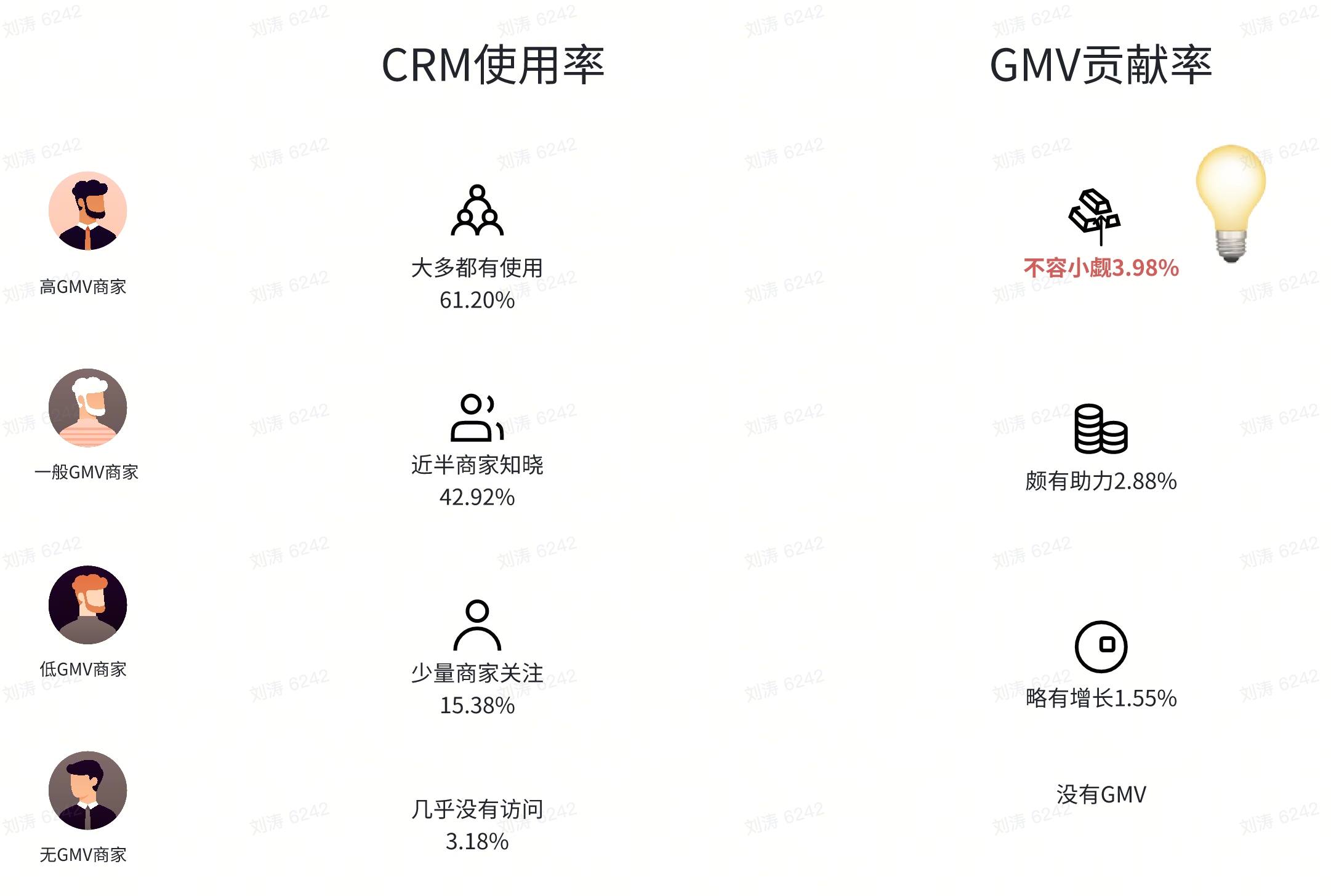 CRM目前被商家广泛使用,且GMV越高的商家使用比例越高,CRM对头部商家的GMV贡献度也越高