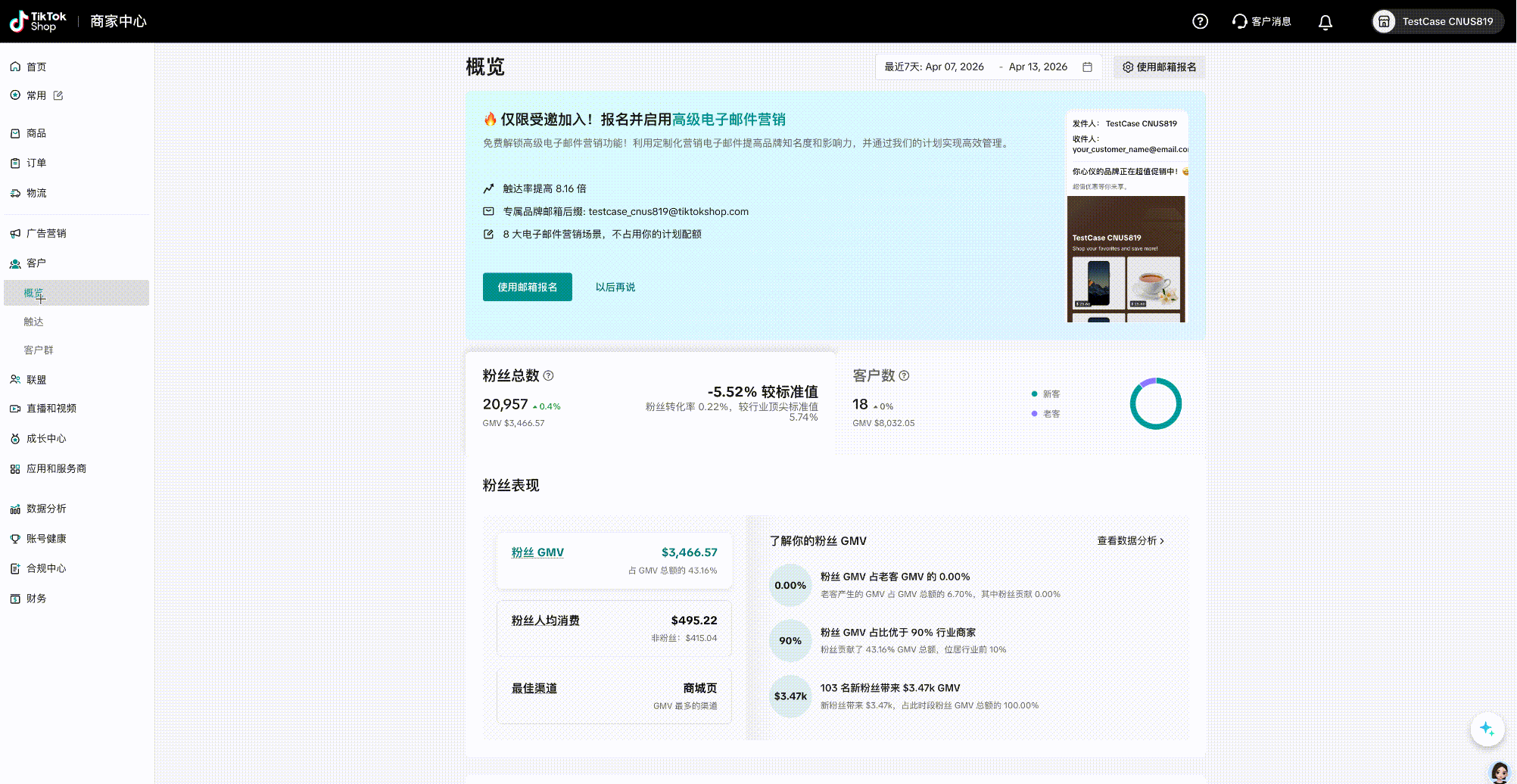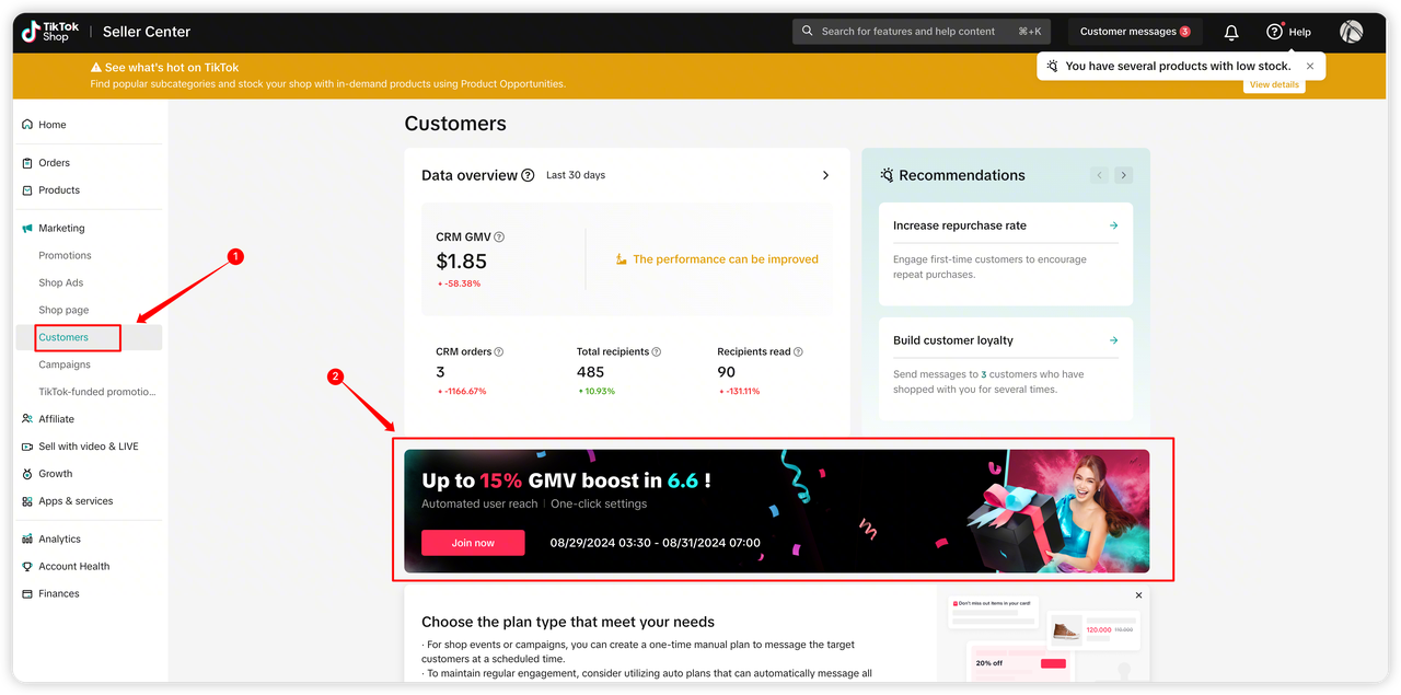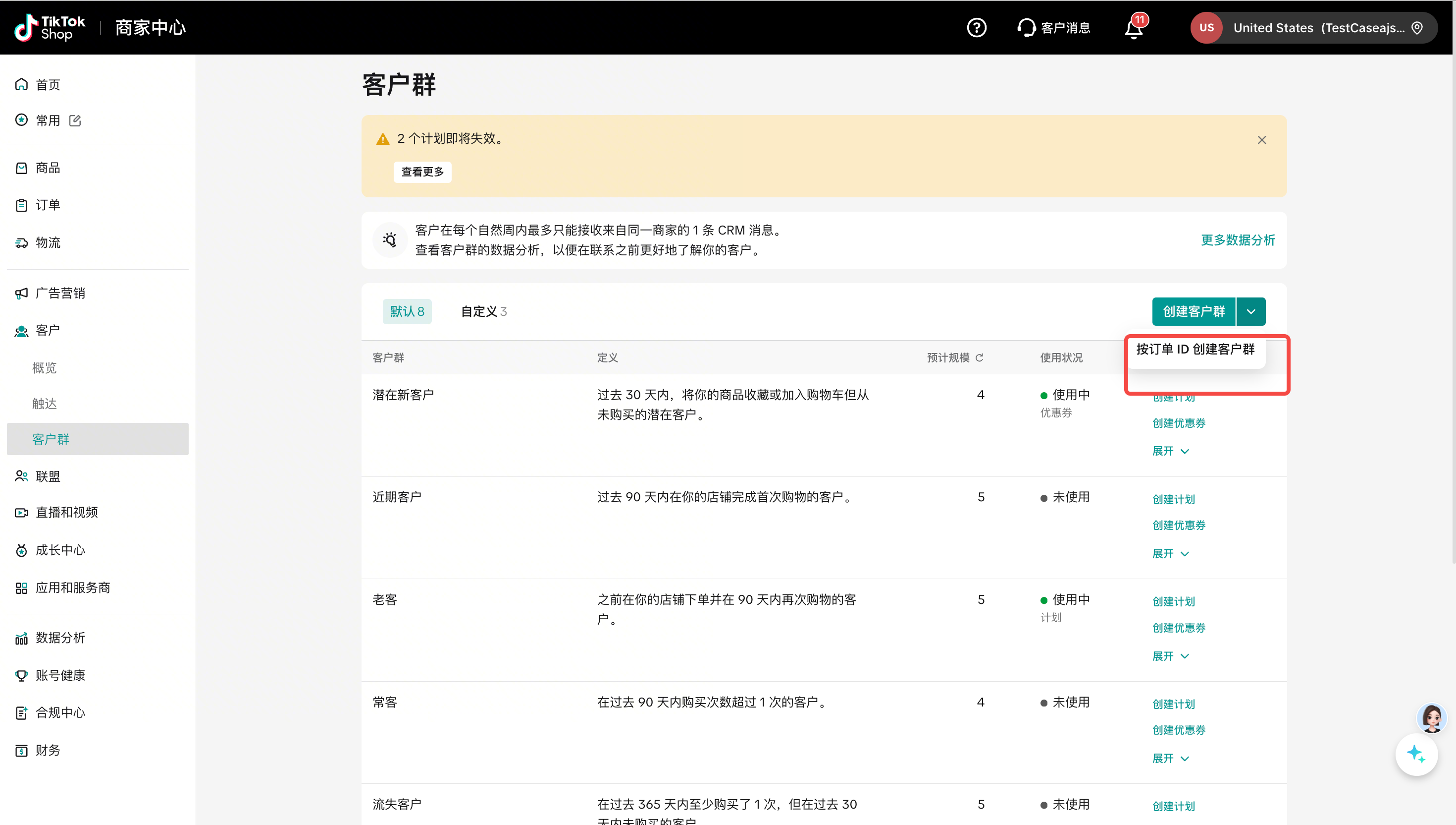 满足上述条件的商家,可以在自己的店铺首页-客户,看到该功能入口。直达链接:https://seller.tiktokglobalshop.com/crm