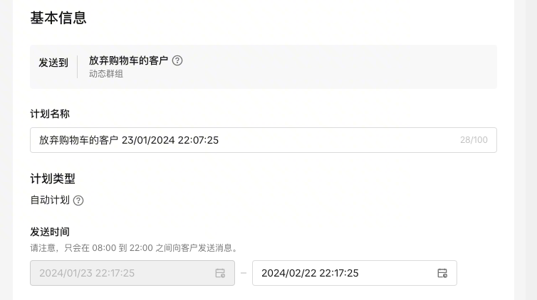 自动计划:设置自动发送消息的持续时间【暂无配额限制】