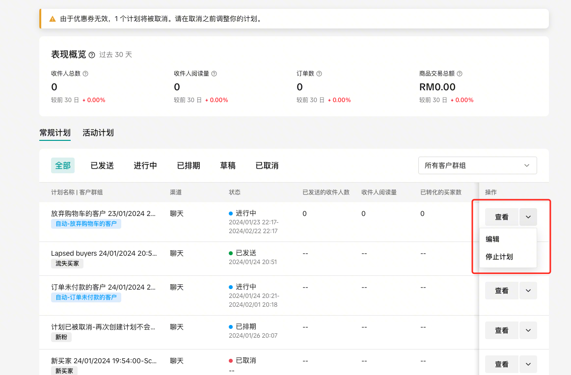 您暂时被限制创建新的CRM计划或编辑现有计划。不过,之前已激活的计划将继续正常运行,不受影响。