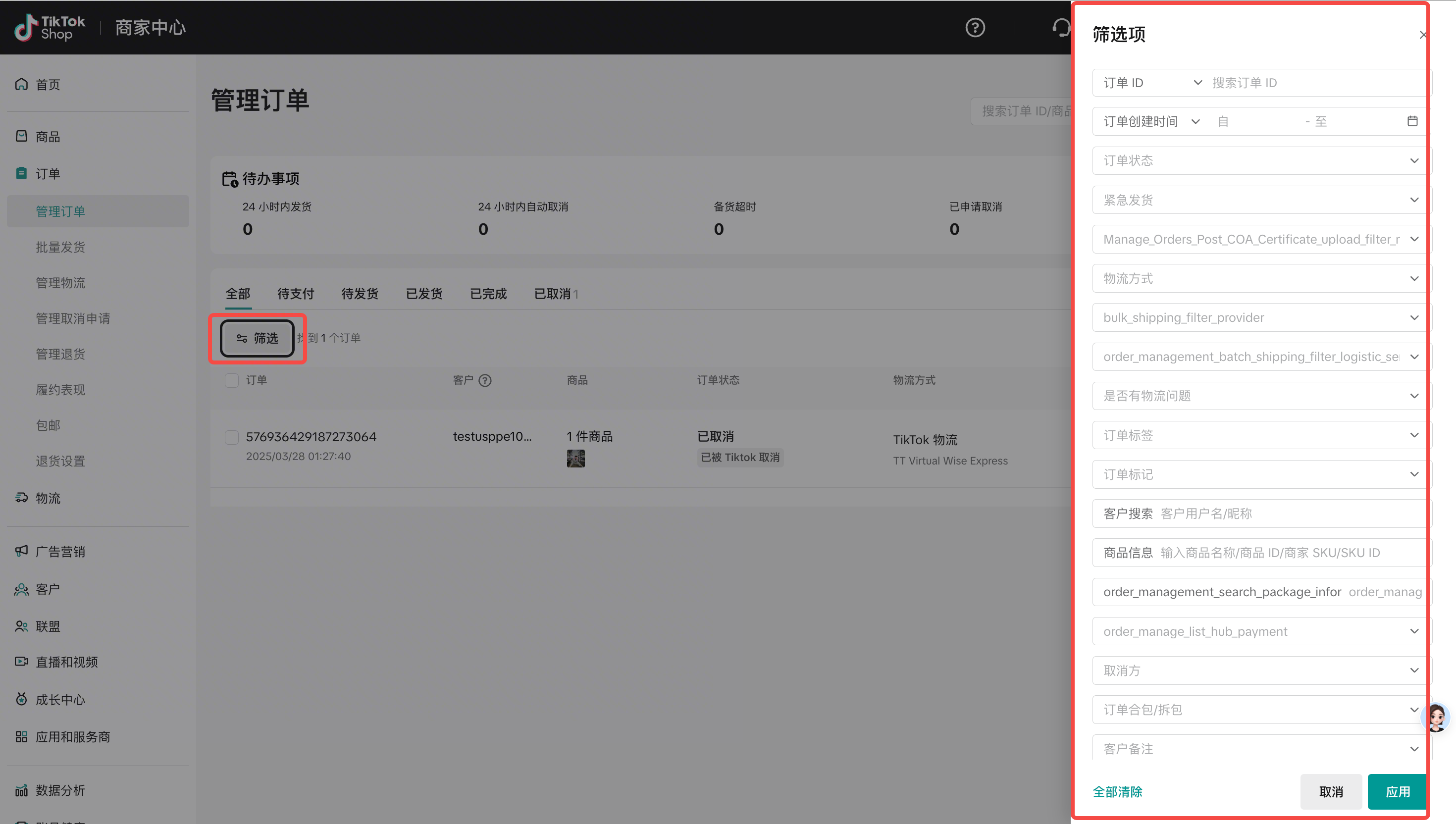 筛选订单状态