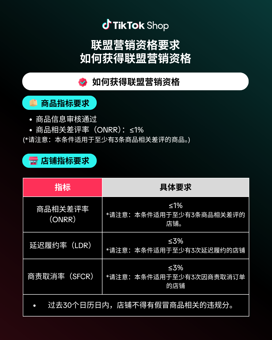 保持联盟合作资格—请确认您的店铺与商品满足以下要求: