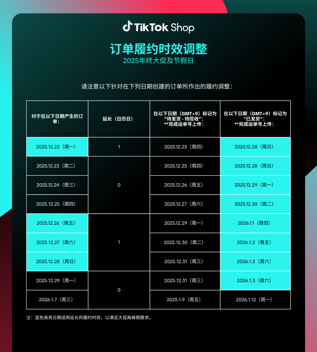请注意:2025 年终大促及节假日期间,订单履约时效将作出调整