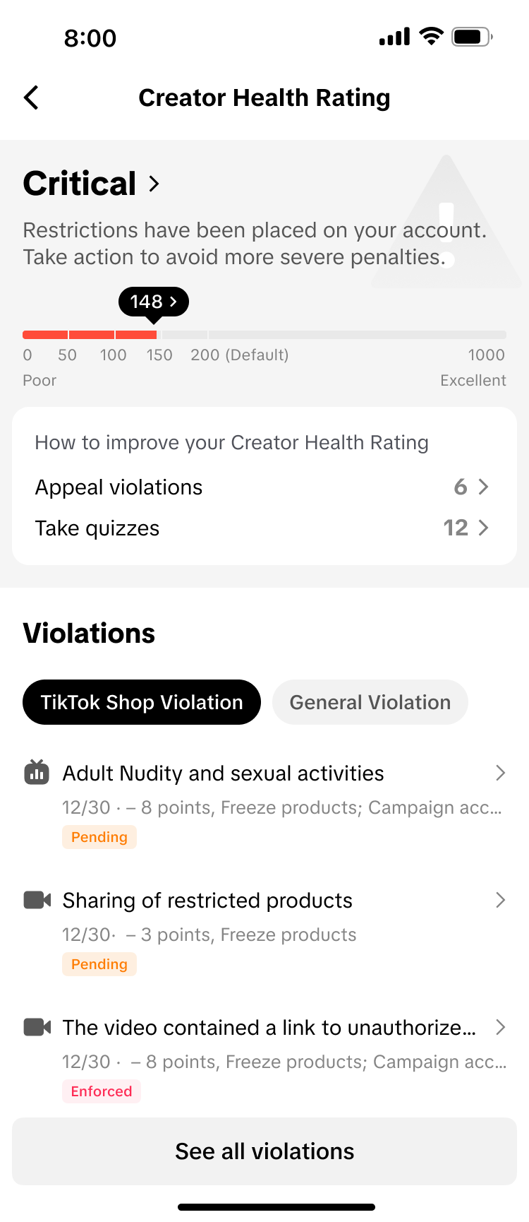 如需了解更多详情,请参阅《TikTok Shop达人处罚政策》。