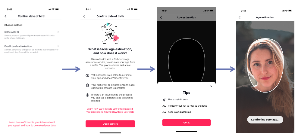 | 2. 如果达人选择通过“人脸年龄估计”进行年龄验证,请按照屏幕上显示的步骤确认年龄。 | ![]() ![]() |