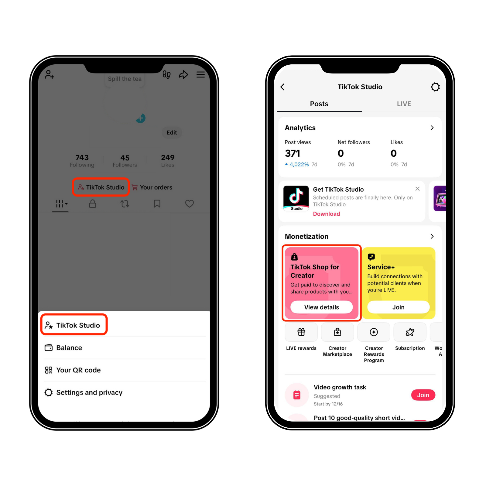第2步:在变现模块,选择“TikTok Shop达人” > 立刻加入