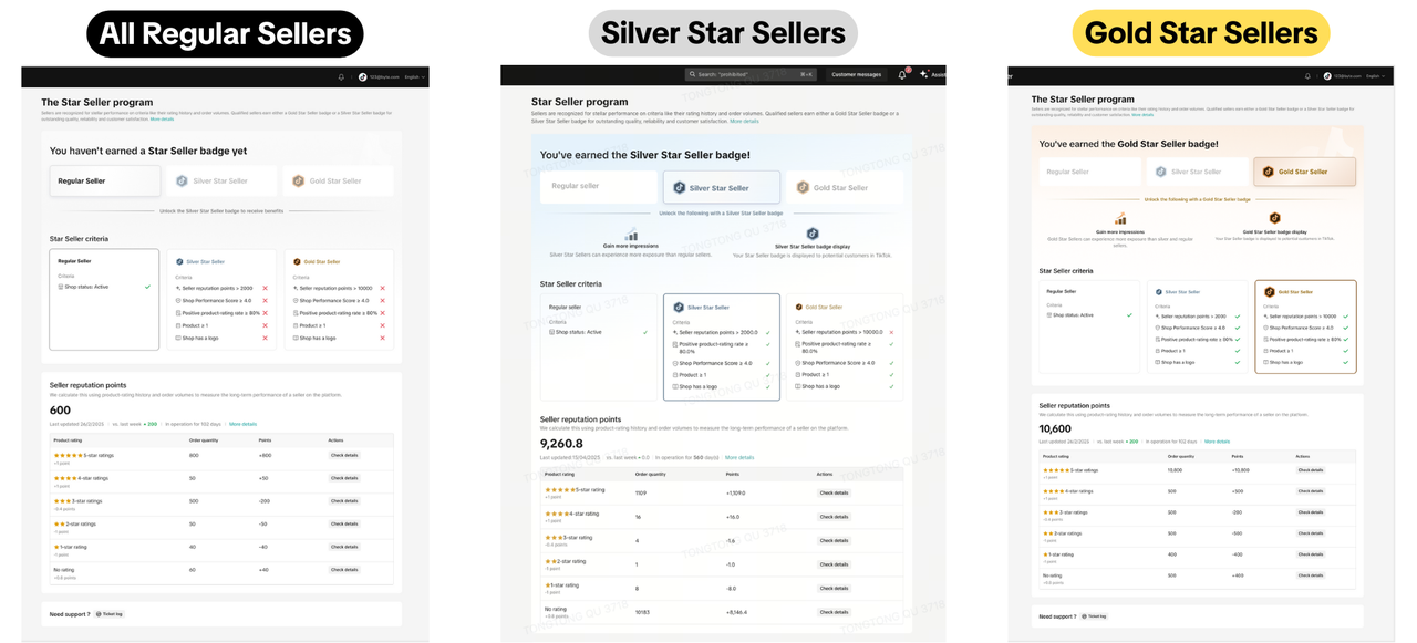 徽章资质每 30 天审核一次,审核时间为每月初。例如,2025年2月的徽章资格审查将于2025年2月1日进行,考查您的店铺在2025年1月期间是否符合相关标准。