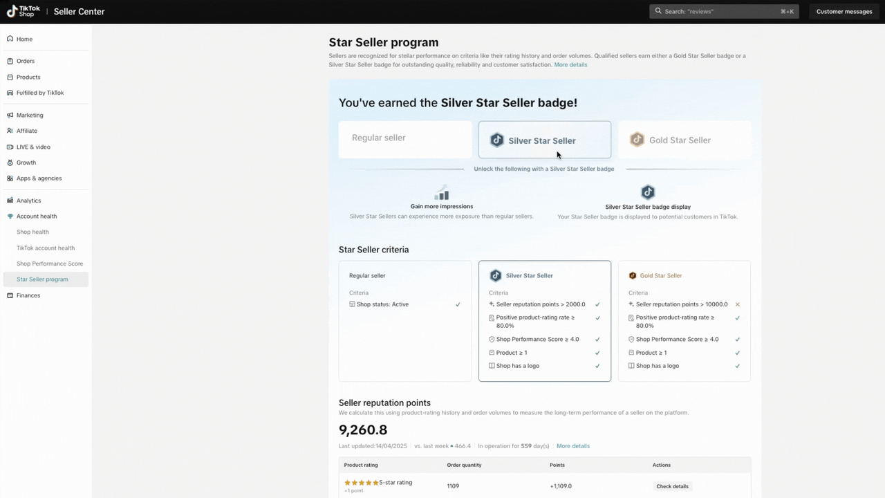 访问路径:卖家中心 > 点击 “账户健康” > 点击 “星级卖家”