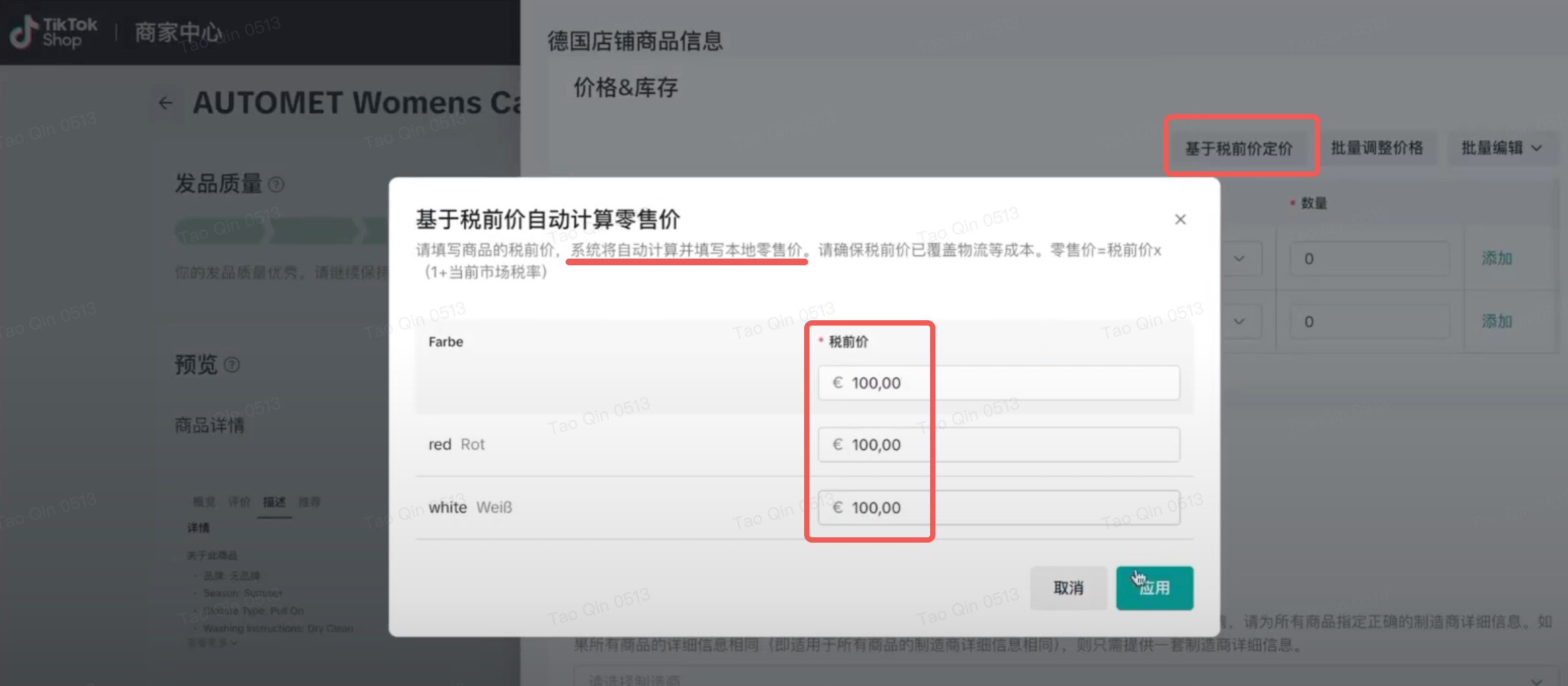| 税前价格设置 | – 您可以计算完零售价格直接录入系统;或系统也提供「基于税前价定价」的小工具,请填写商品的税前价,系统将自动计算并填写本地零售价。 | ![]() ![]() |