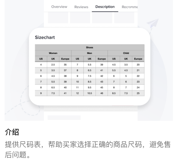 利用尺码表工具,您可以更新商品和/或商品类目特有的重要尺寸信息。您可以自行选择计量方式,制定适用自己商品的尺码表。制定尺码表有助于买家选择合适的商品,降低商品退货率。
