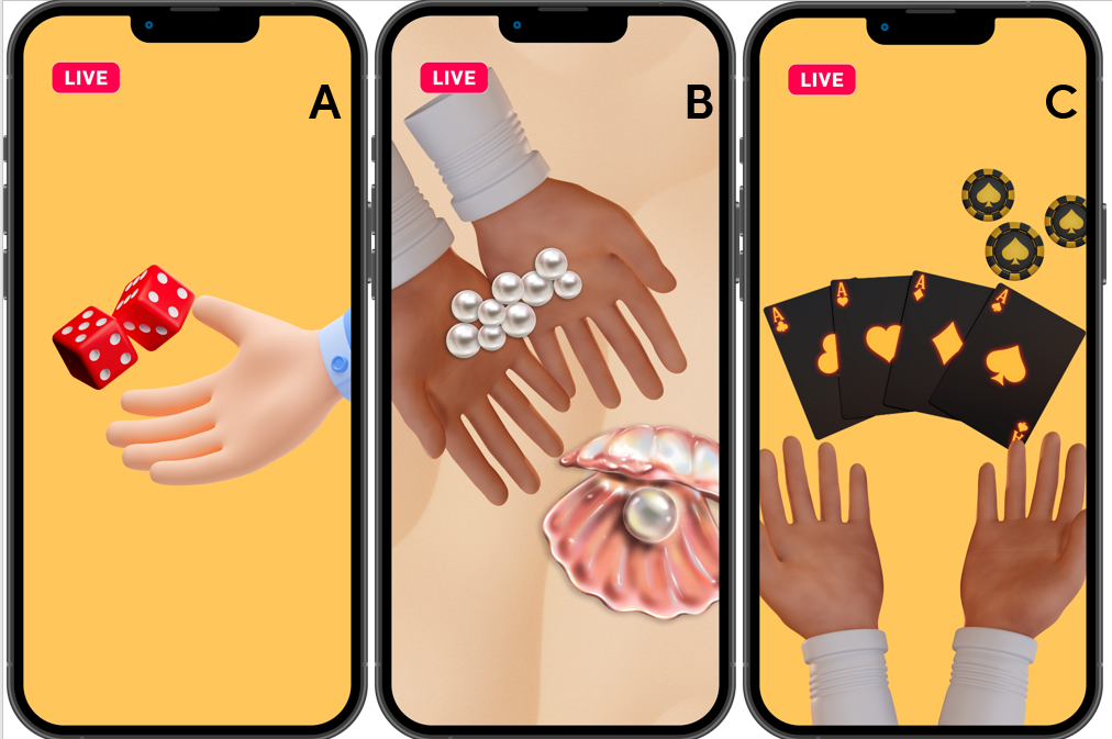 - 赌博:严禁在直播和视频中开展和/或推广所有赌博活动。也不得在TikTok Shop上销售与赌博相关的商品、服务和用具。包括但不限于,用户付费旋转轮盘以赢取有价值物品的行为。