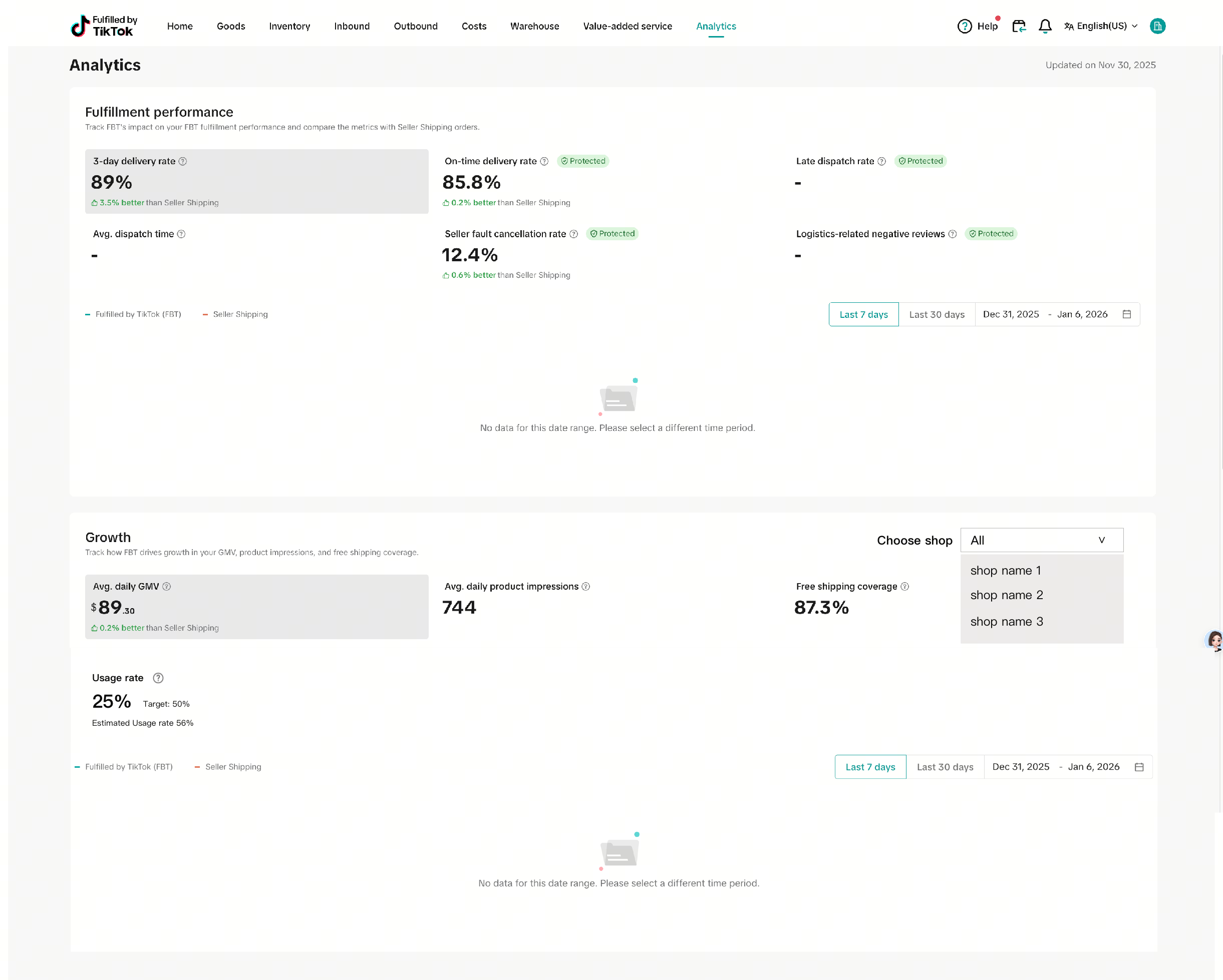 | SKU | ①预计未来30天的销量 | ②FBT在仓库存 | ③未来30天FBT在途库存 | 预计未来30天可用FBT履约单量 (在①与②+③中取最小值) | 预计渗透率 |