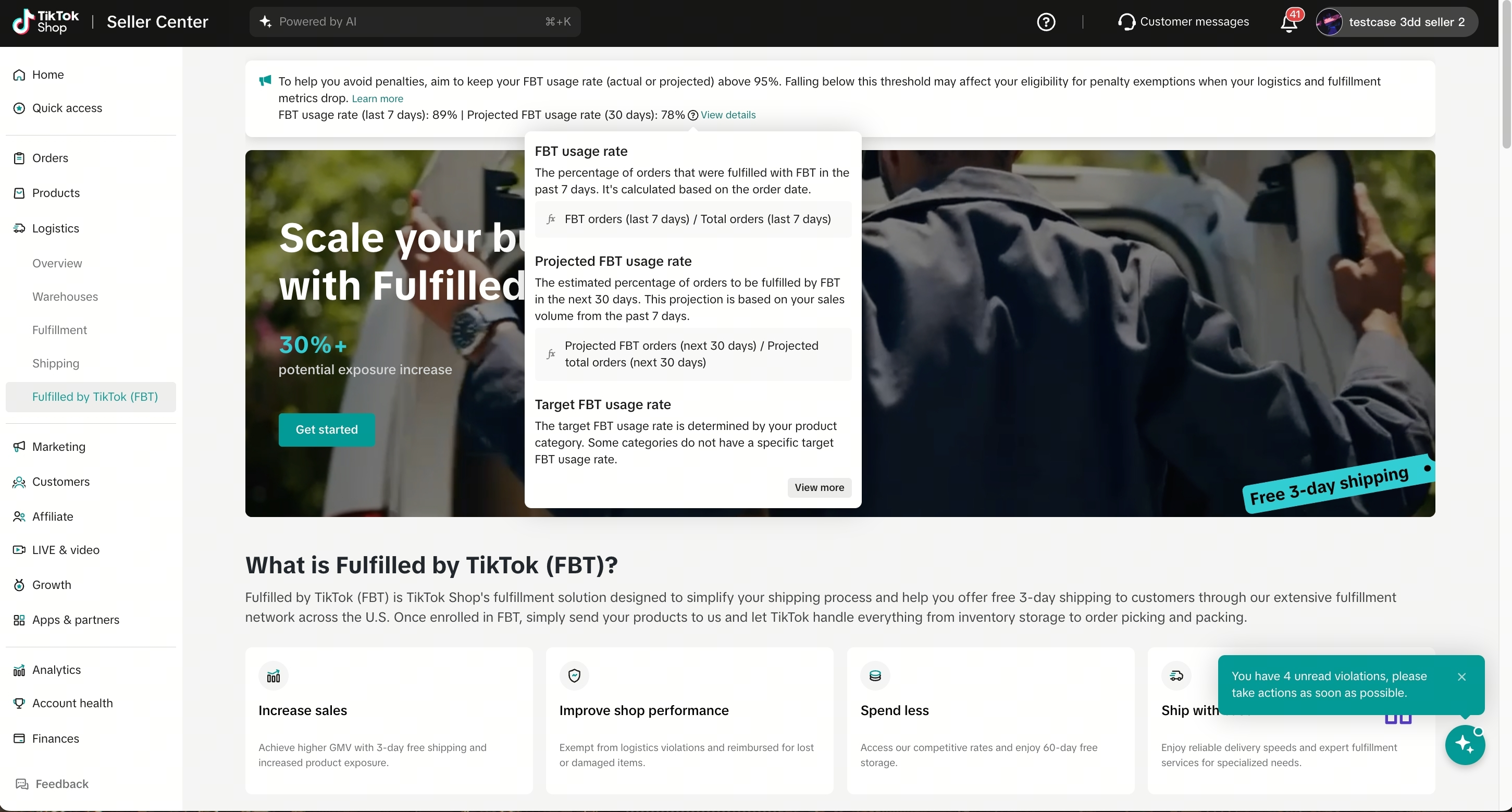 - 商家需在 Seller Center – Fulfilled by TikTok 中点击【Get started】加入FBT,后打开FBT Merchant Portal 选择需入库的商品创建 FBT 入库单(IBR),填写商品信息、装箱信息、预计到仓信息等。操作路径和详细步骤可跳转查看FBT入库单创建指南。