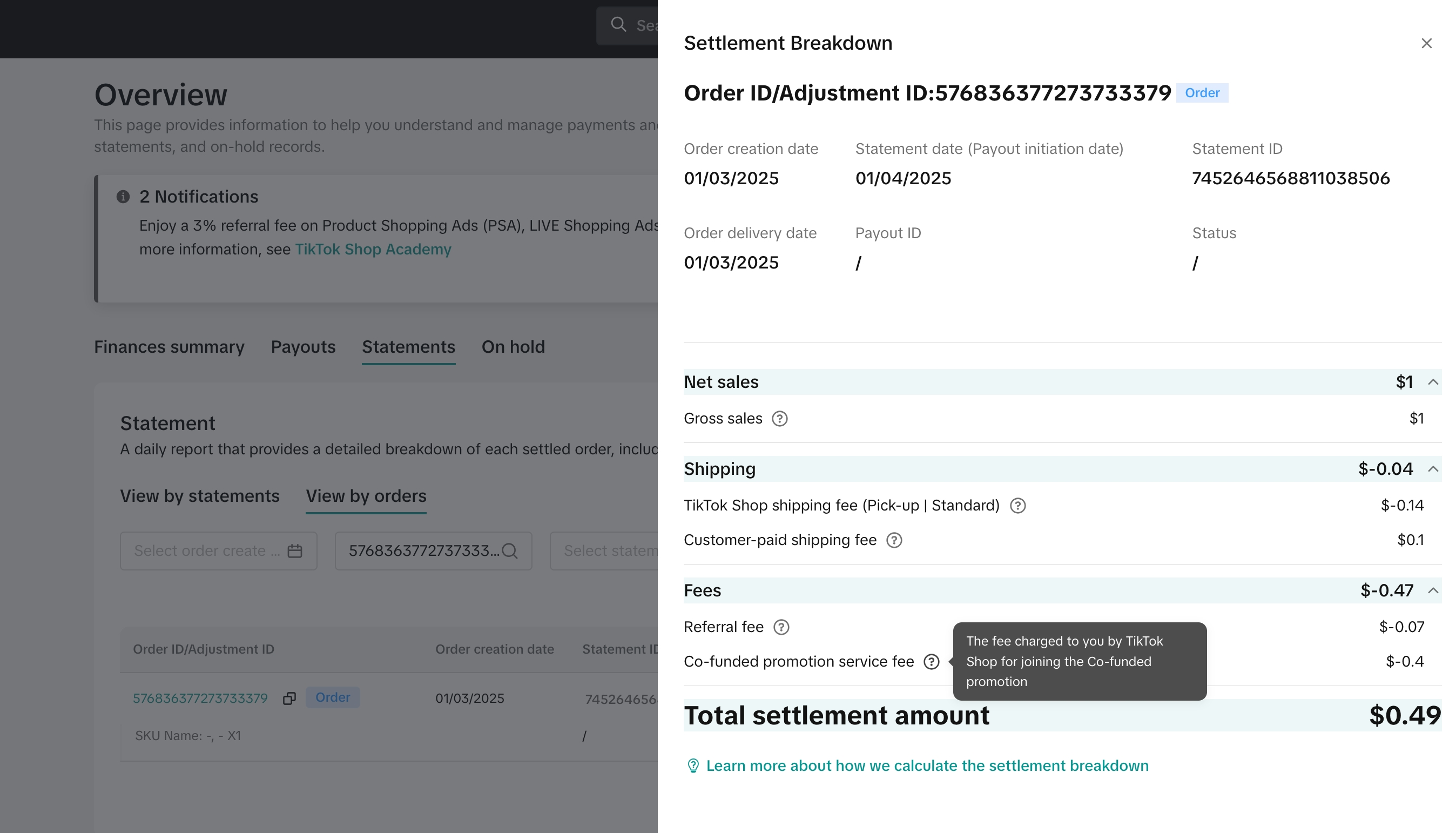 - 第3步:查看详细绩效表现数据。订单层级的明细可在结算板块中查询,支持筛选共资促销订单。