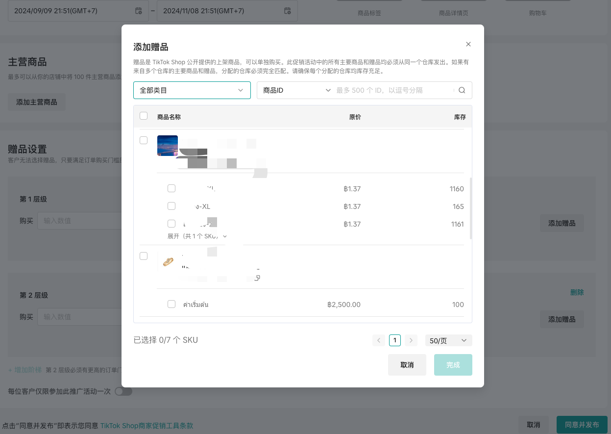 购物赠好礼可以与除多买优惠和商品组合促销之外的所有卖家资助的促销活动叠加。这也就意味着,卖家将无法在同一时期内为相同产品创建购物赠好礼,多买优惠,商品组合促销三种促销玩法