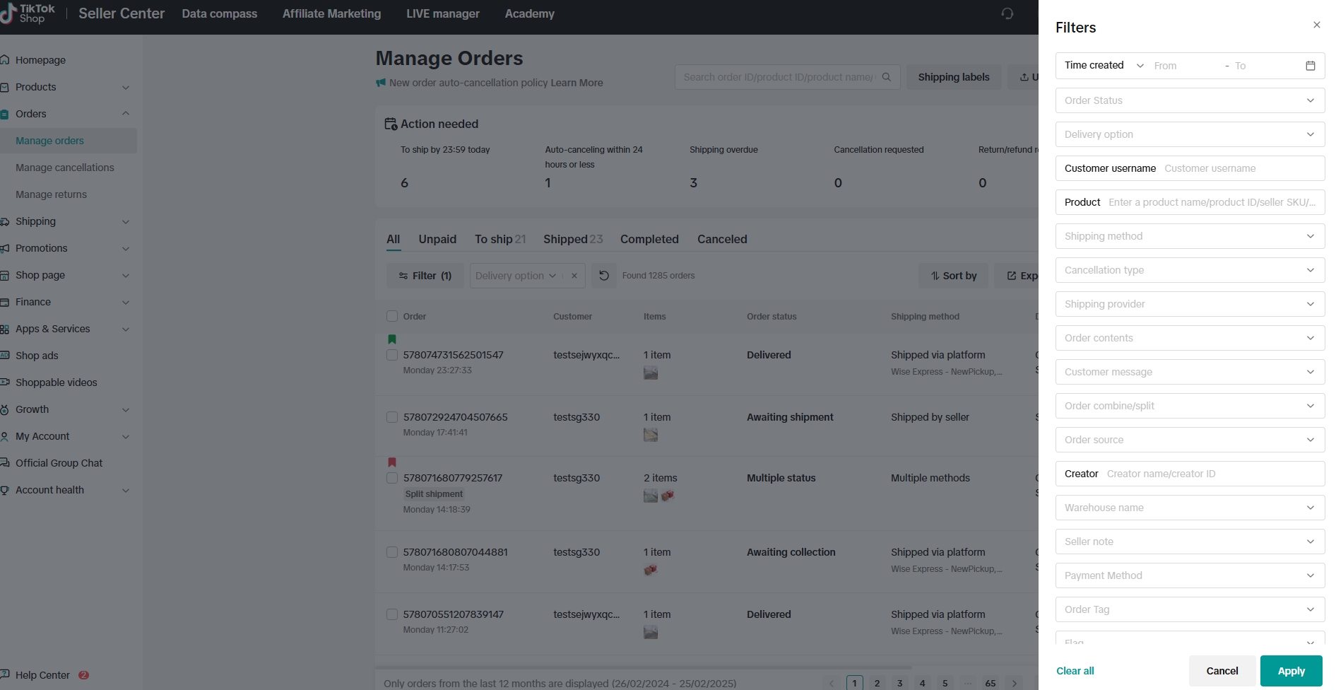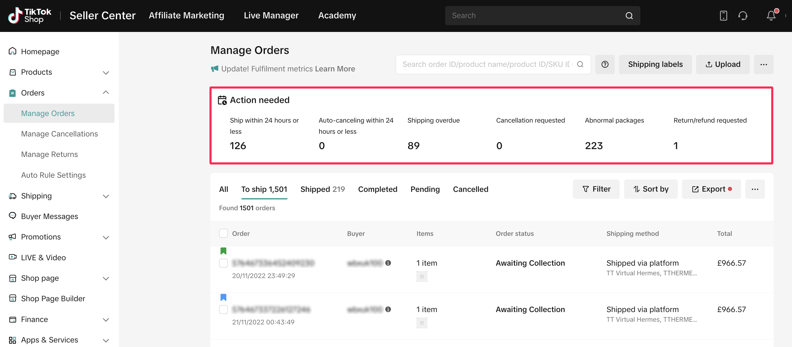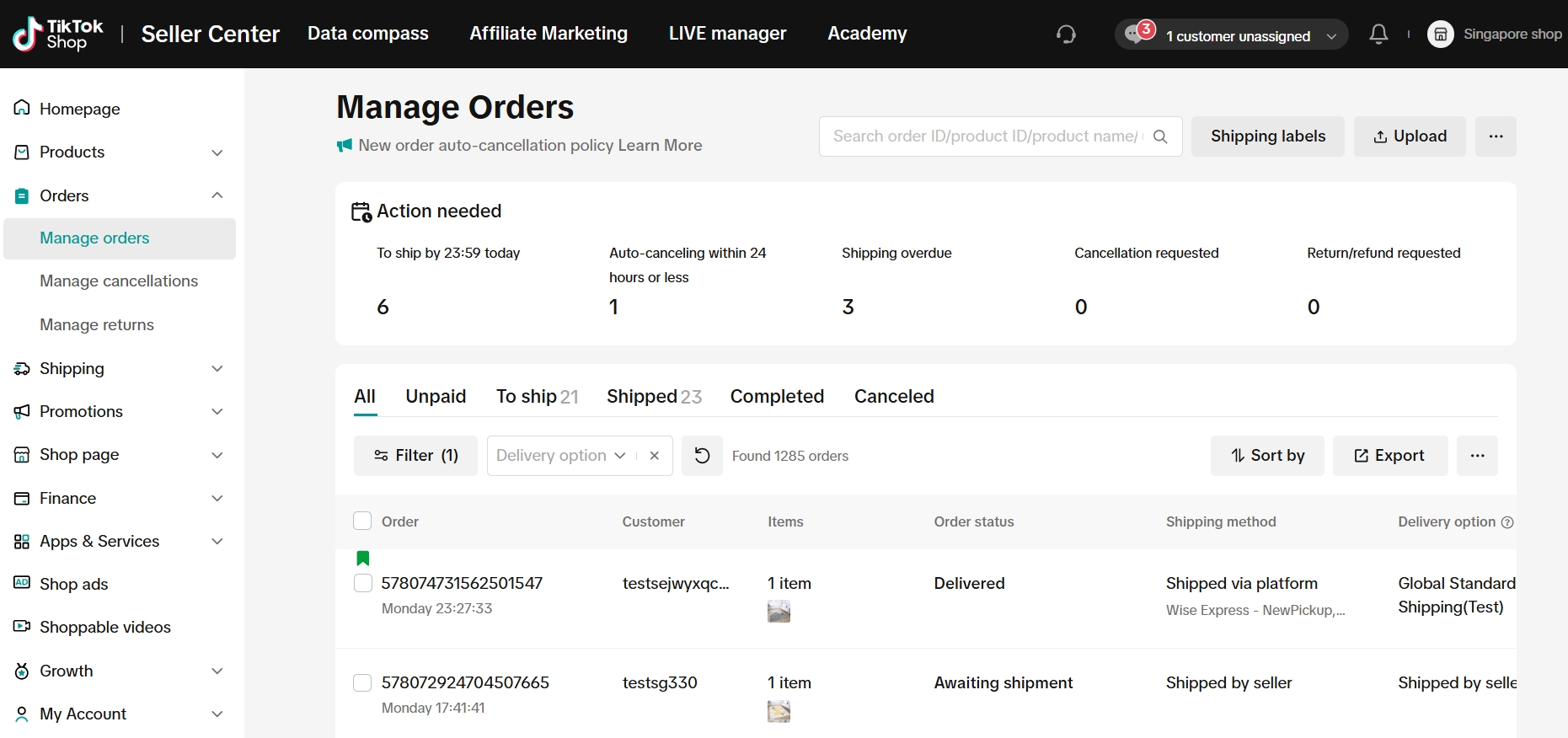 平台已优化“管理订单”页面的UI(用户界面)设计,新增了一个待处理标签页,可以提醒商家注意不要忽略任何关键订单。该标签页还突出显示了订单取消申请及退货/退款申请,让商家充分了解订单状况。