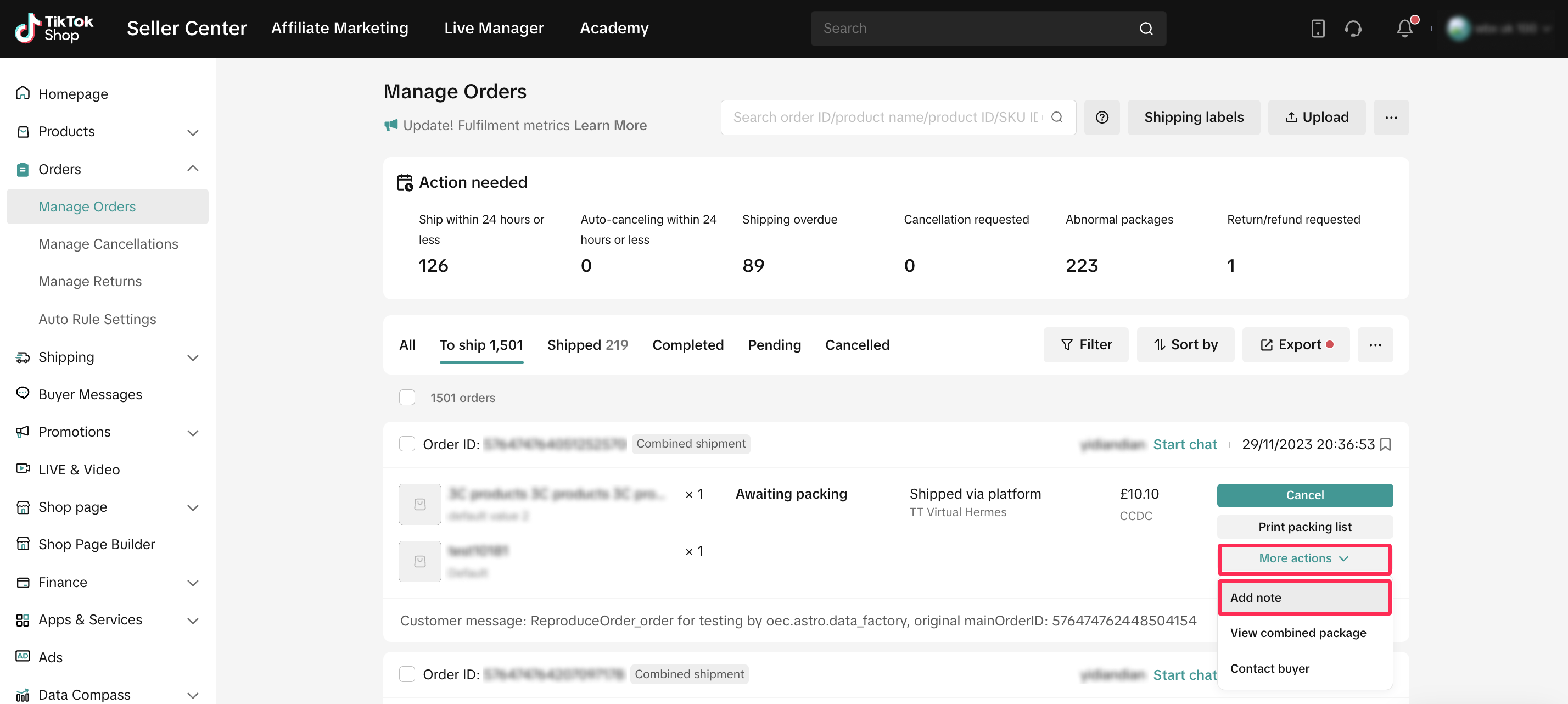 为实现高效管理订单,平台增加了“添加备注”功能,可用作个人提示或识别需要特殊关注的订单。