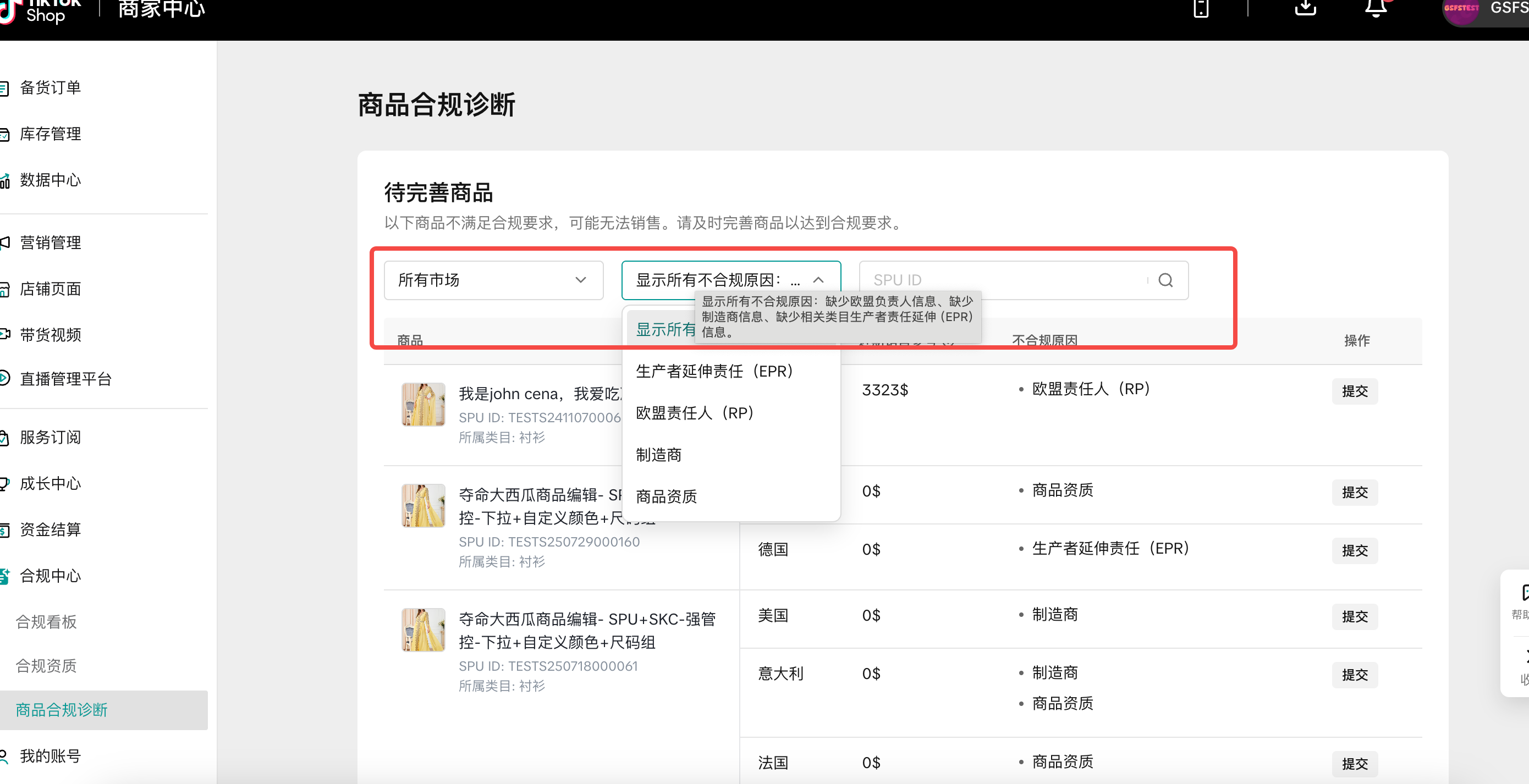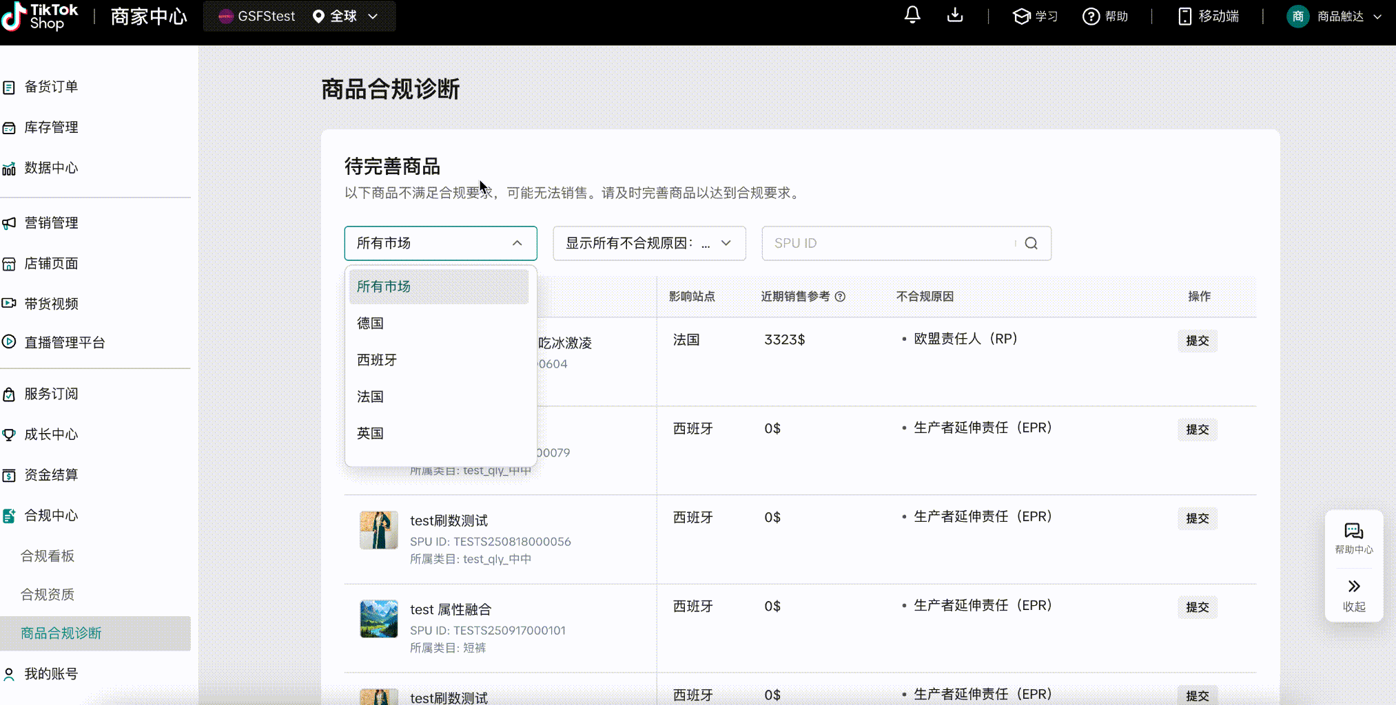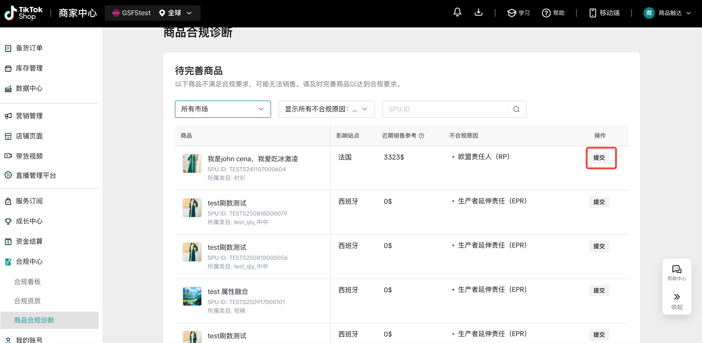 页面直达链接:https://seller.tiktokshopglobalselling.com/compliance/diagnosis