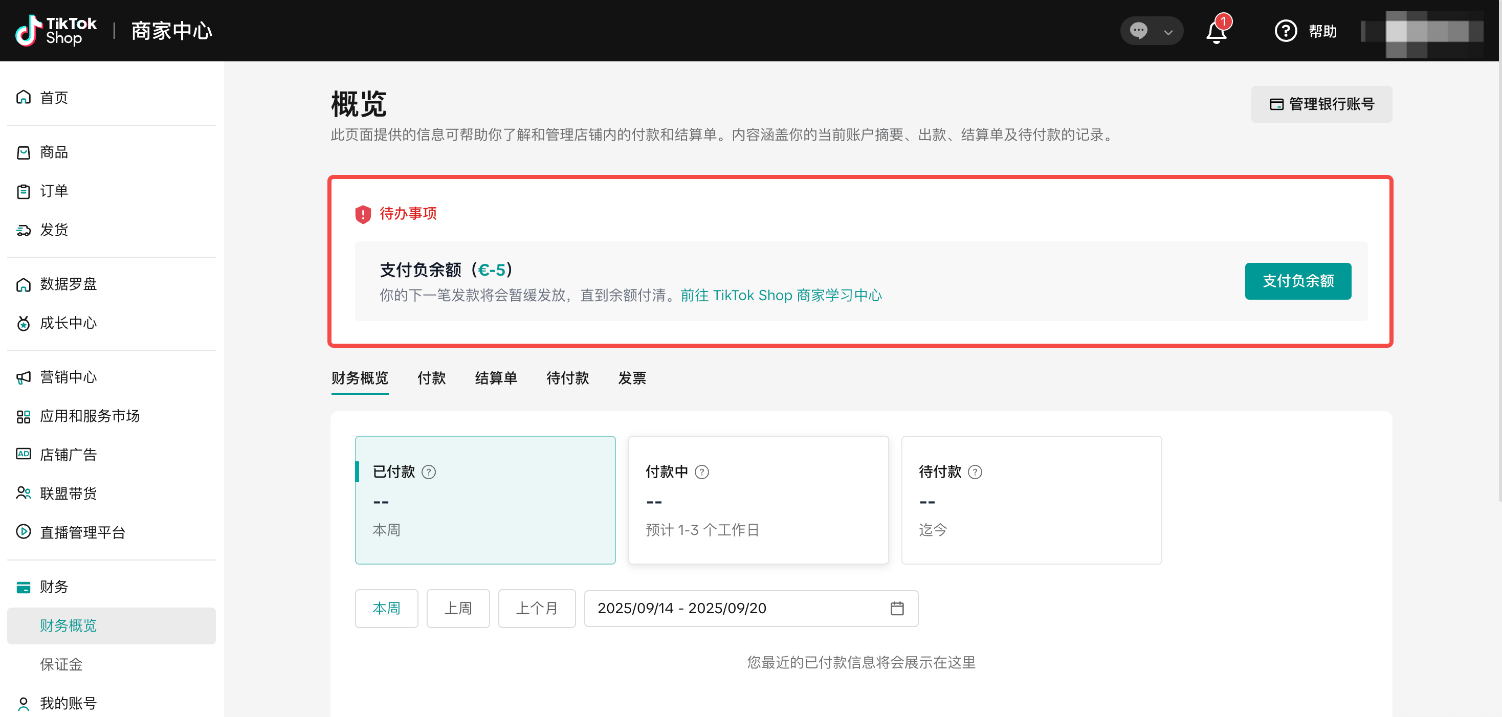 通常情况下,负余额会自动从未来销售额中扣除。当待付款金额超过最小付款金额后,TikTok Shop将发起付款。