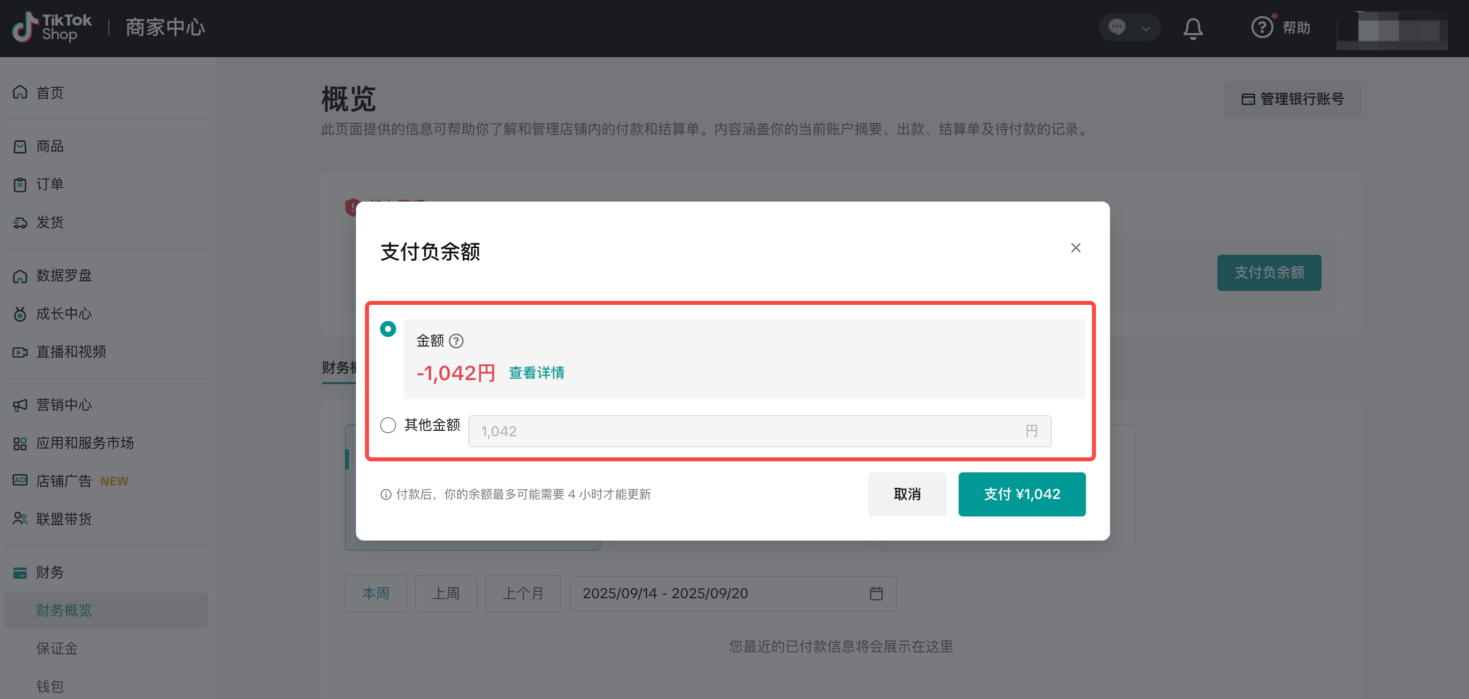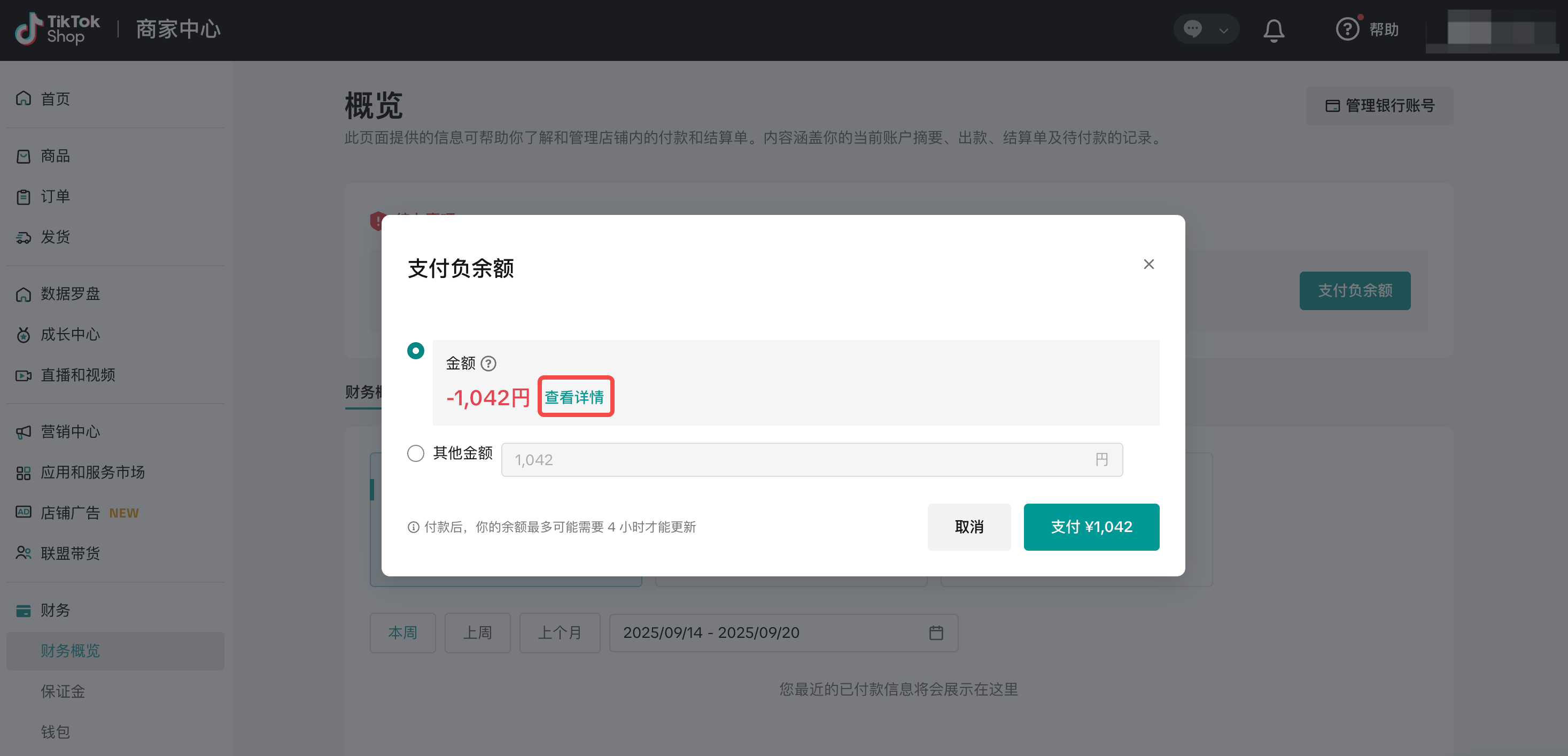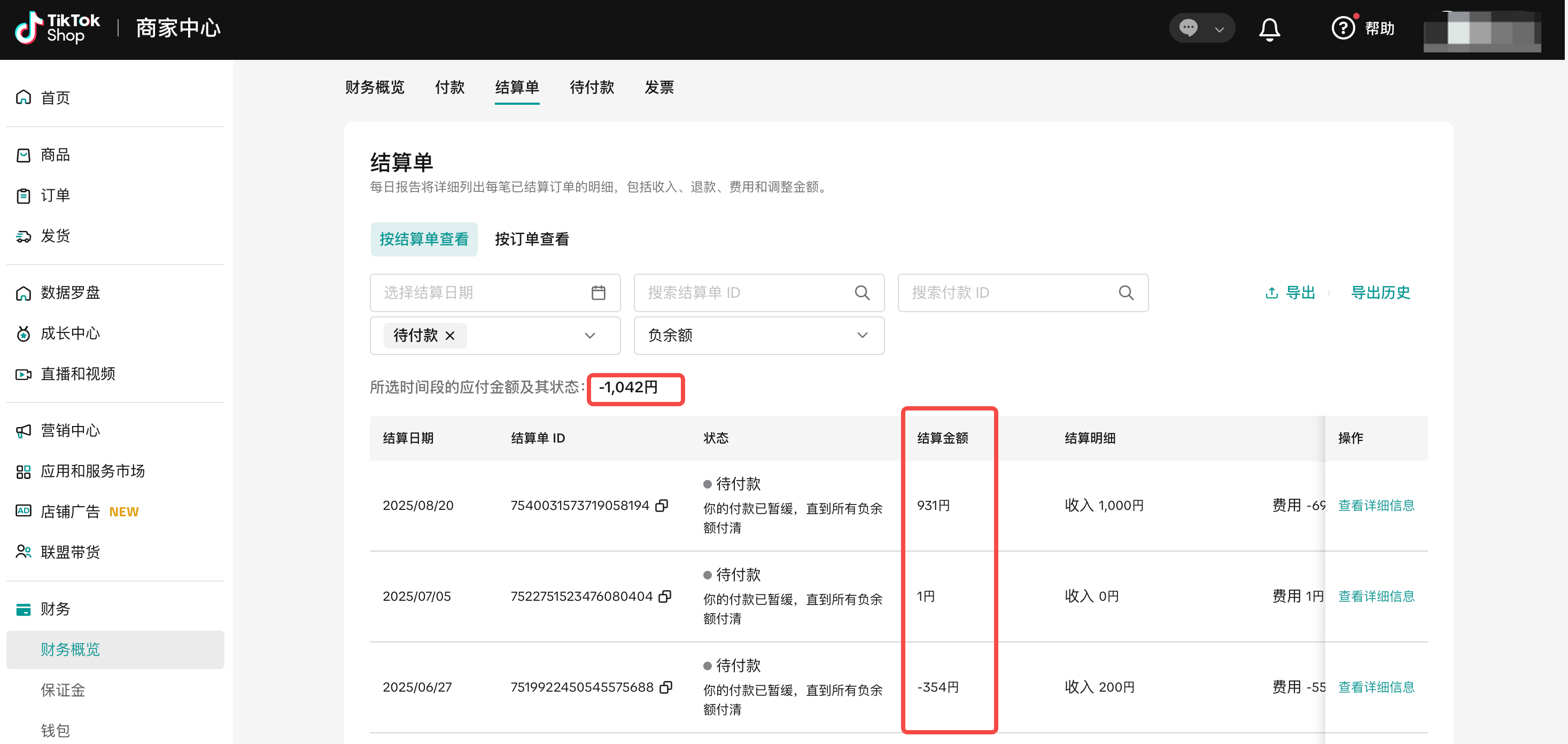 当结算周期内各种平台费用或退款超过店铺收入时,就会出现负余额。
