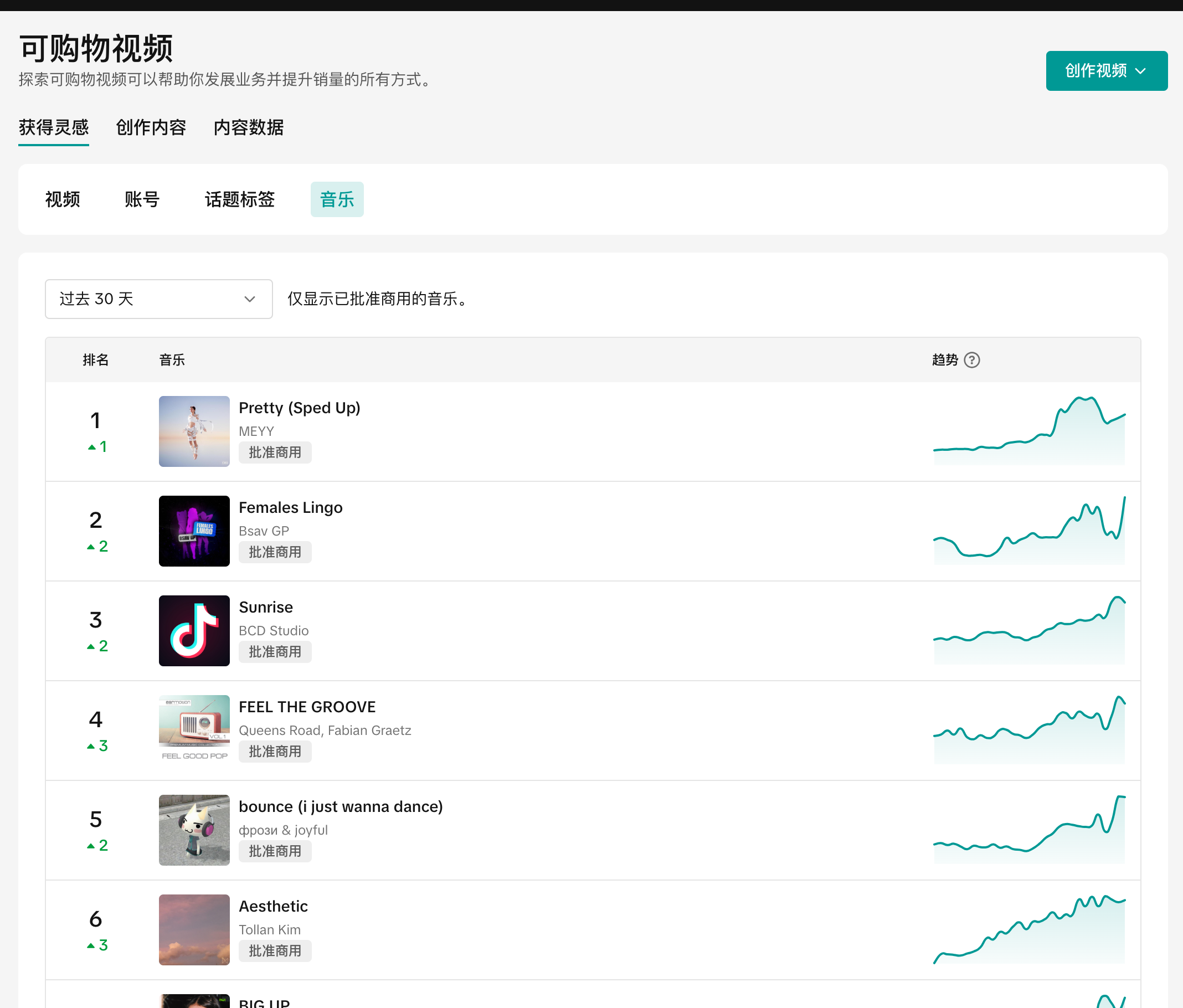 查看热门视频、账户、歌曲和标签,发现吸引购物者的内容。