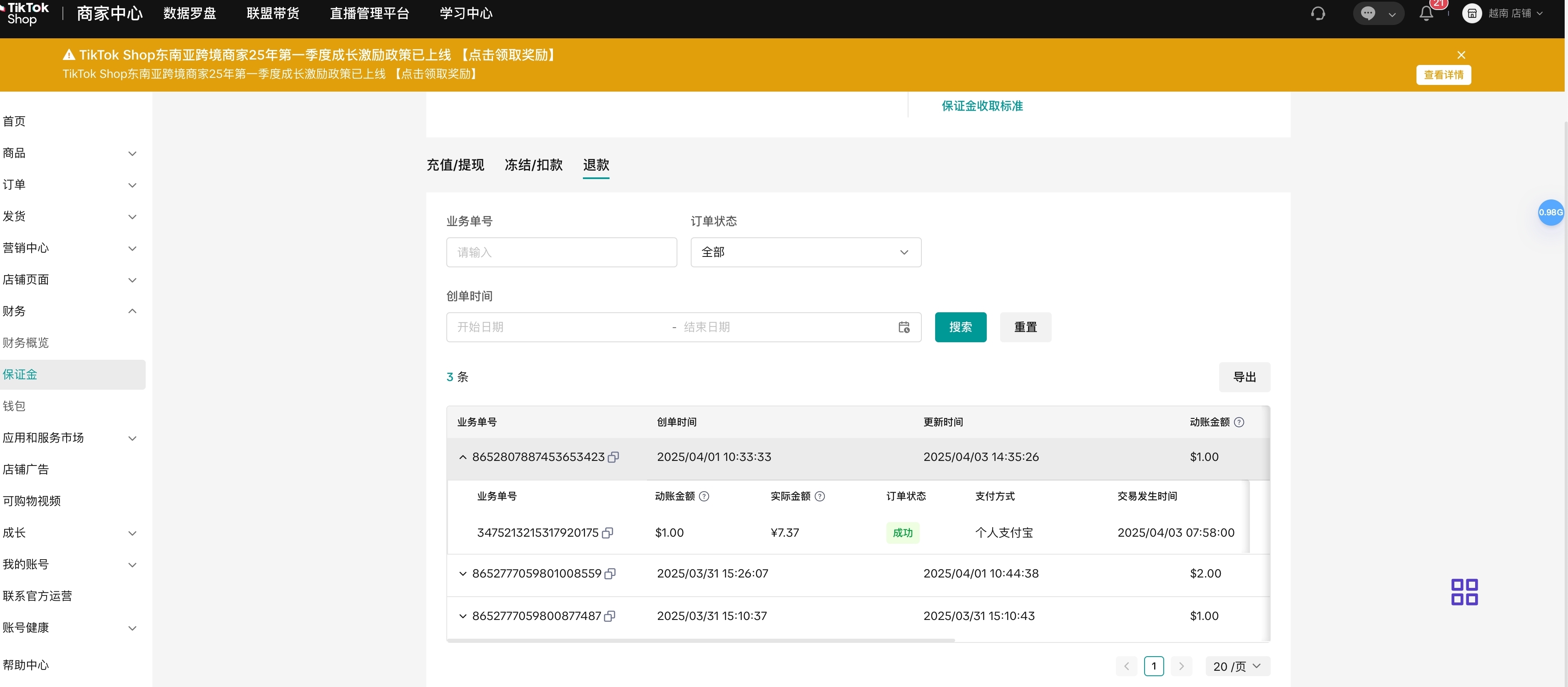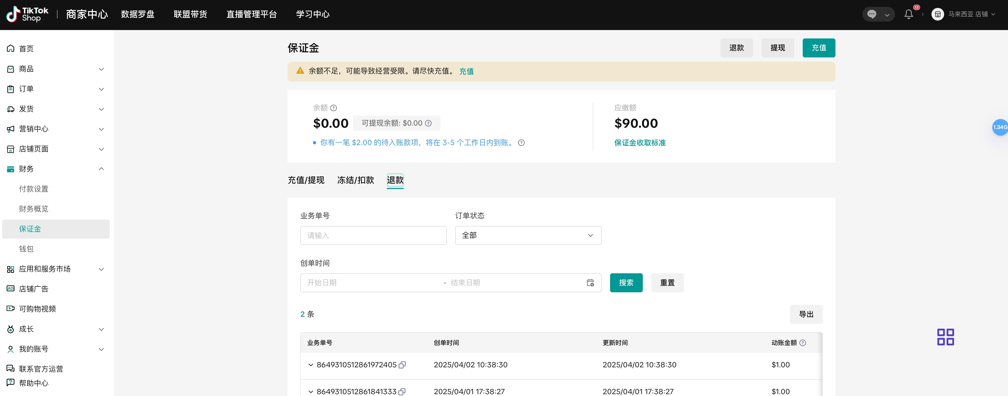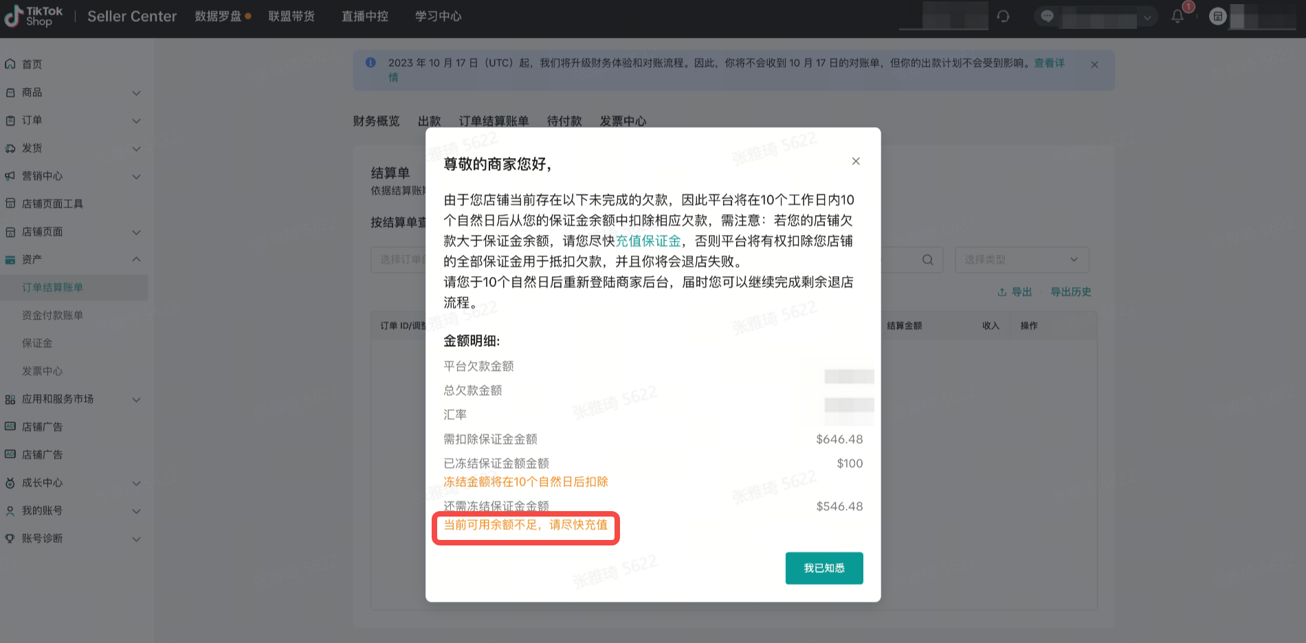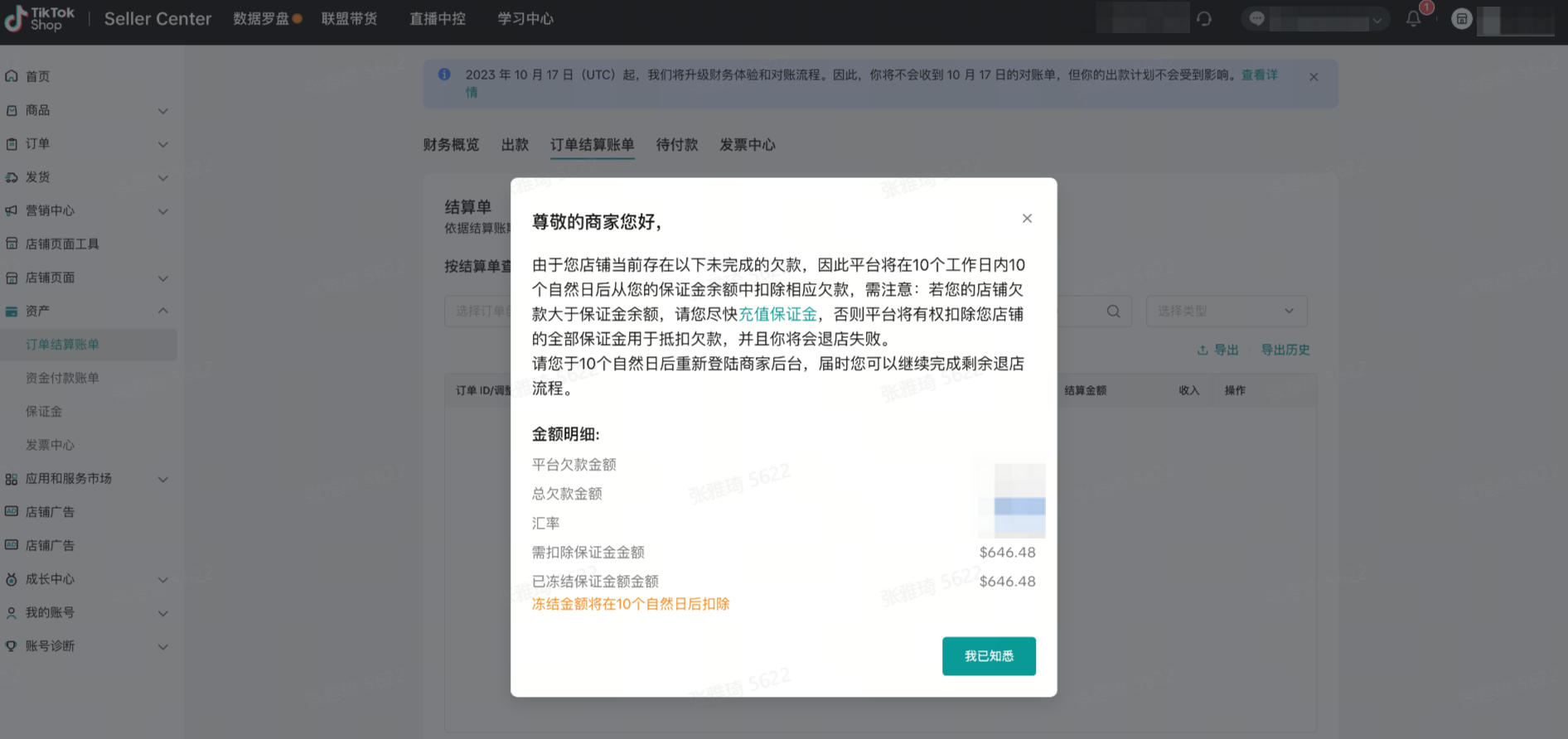 如果TikTok Shop决定冻结或扣除部分或全部店铺保证金,您将在卖家中心收到通知,如果您需要了解更多详情可通过帮助中心创建工单联系平台客服获得帮助。