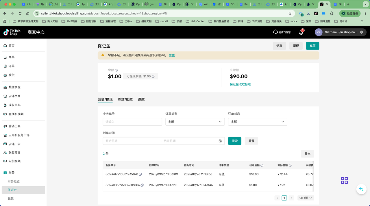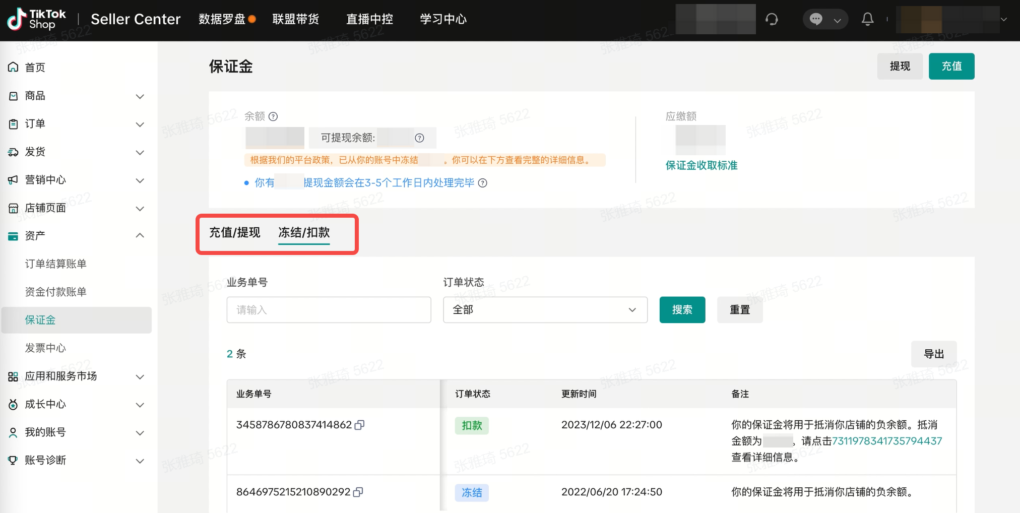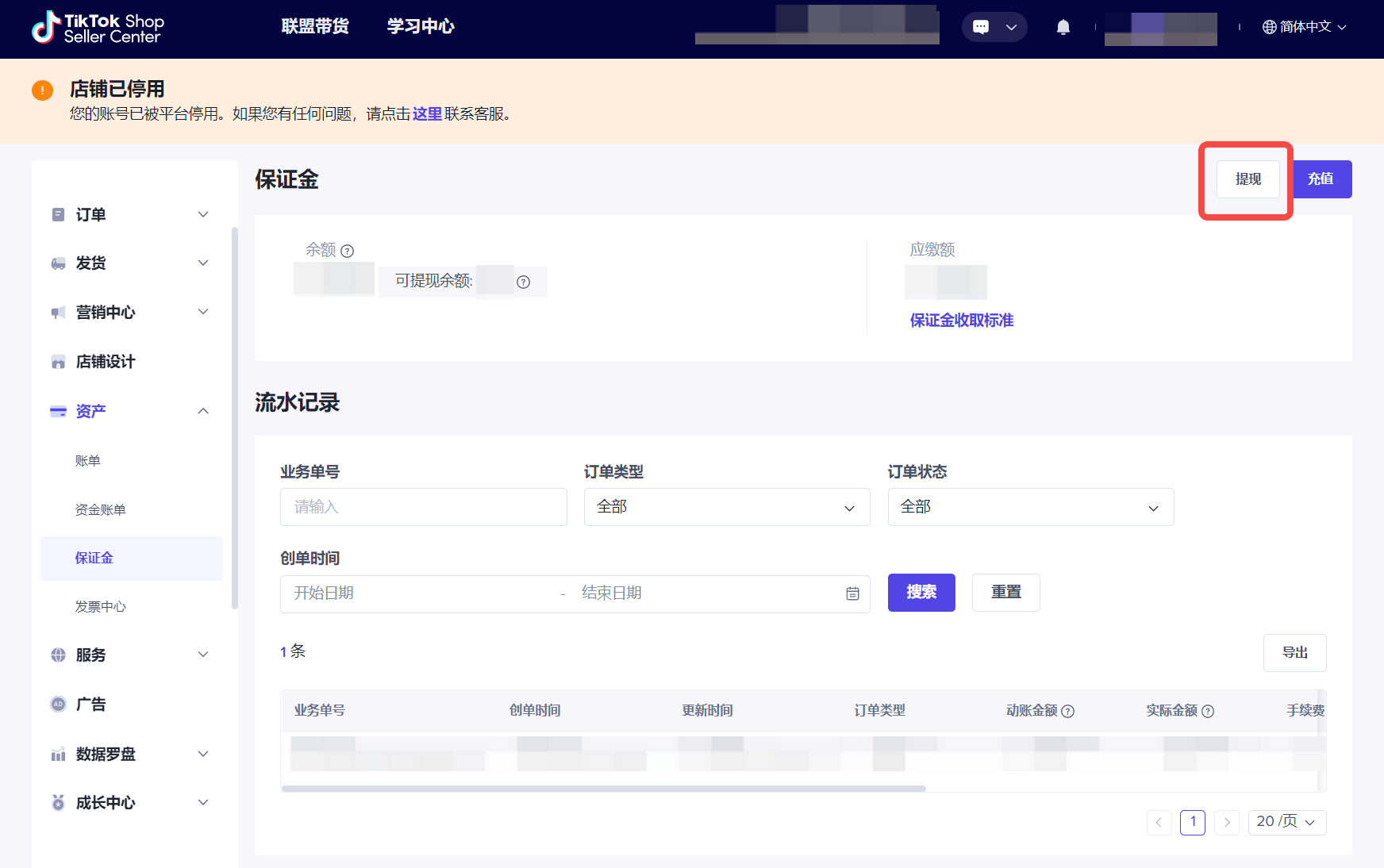- 我可以在哪里查询店铺保证金的充值或扣除记录?