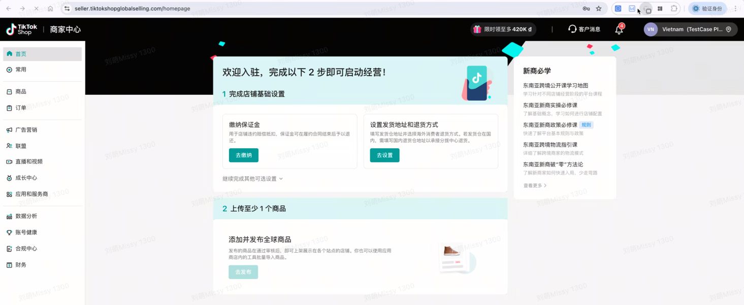使用任何的付款方式,都需确保付款账户的持有人与您TikTok Shop店铺注册主体(公司名称或者营业执照上的法人)一致。