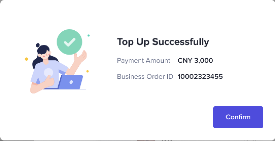 示列说明:假如商家想要充值100GBP,进入收银台时的实时汇率为8.01,则商家需要支付的人民币金额为 (100+100*1%)*8.01 = 809.01 元