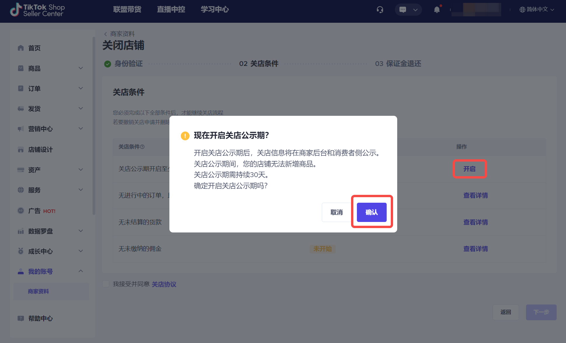 步骤三:完成关店条件。根据《TikTok Shop 跨境卖家店铺关闭政策》,您需要完成该规则中的所有关店条件,才能成功关店。 包括但不限于: