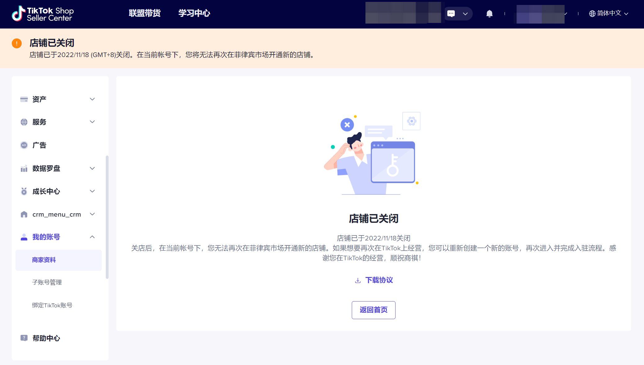 最终当您店铺的关店条件的状态栏均显示为“已完成”时,您就可以签署关店协议并进入保证金退还环节。