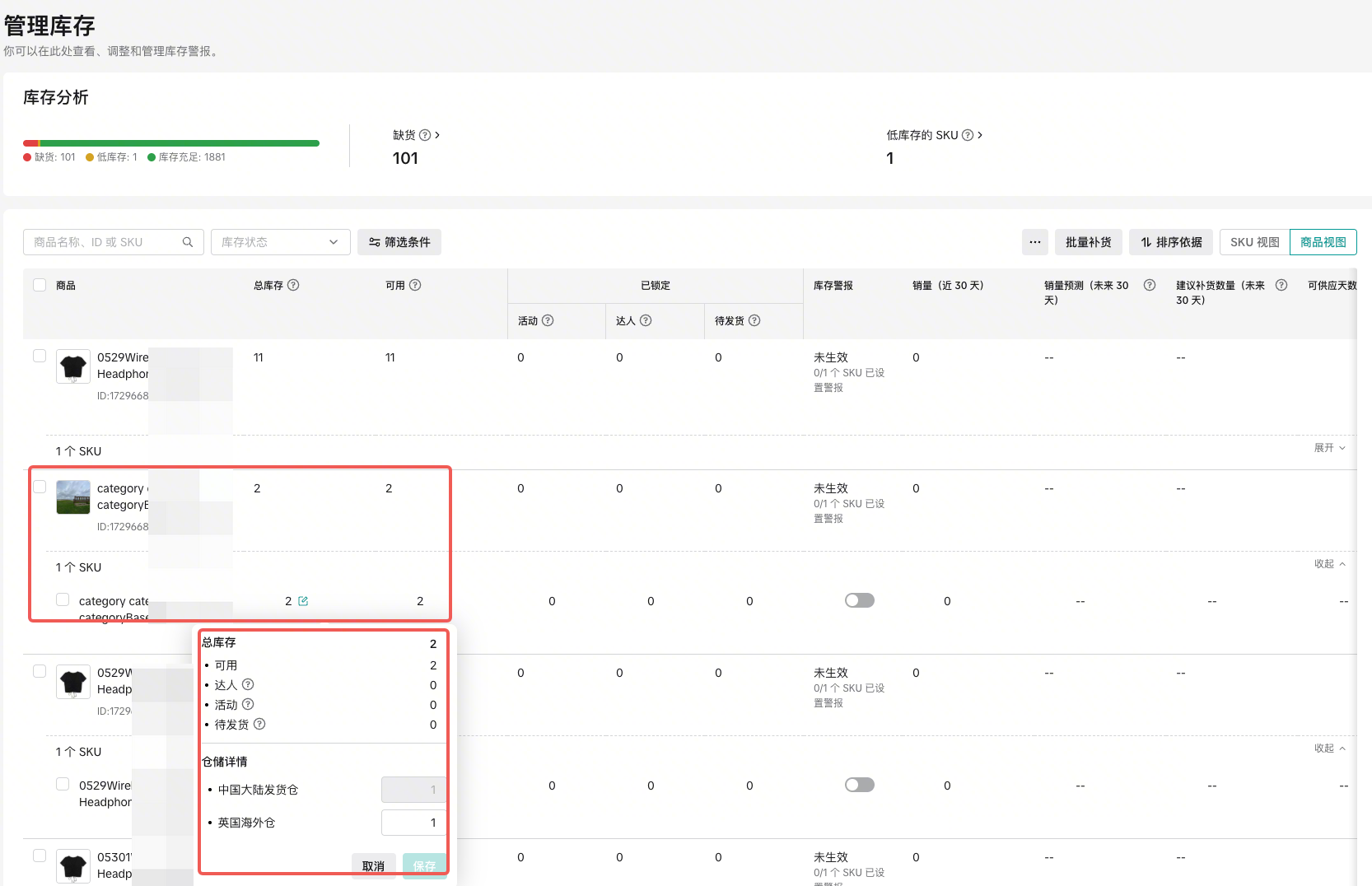 • 智能展开:如果一个 PID 下的任何一个 SKU 处于“低库存”或“缺货”状态,系统会自动展开该 PID,并将其置顶,方便你优先处理。​