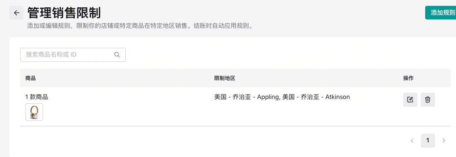 所有创建成功的规则都会展示在“ 管理销售限制设置”页面的历史记录列表中。在这里,您可以方便地查看、编辑或删除它们。​
