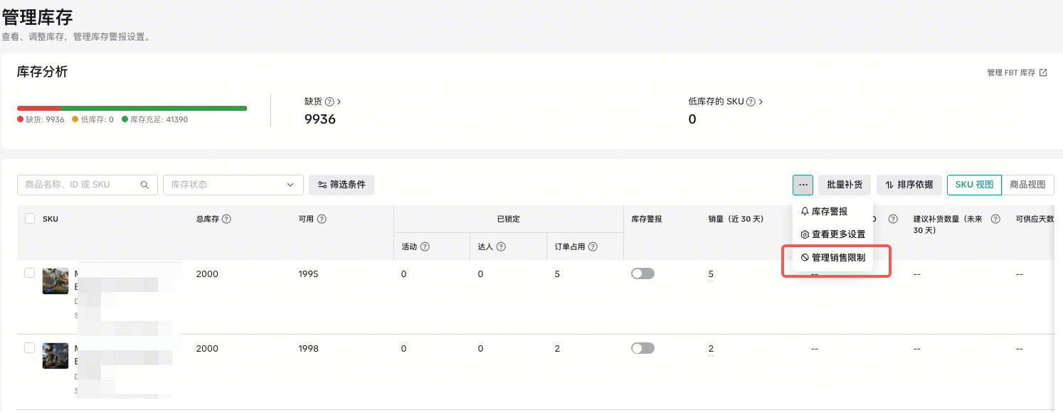 A1:部分特殊类型的商品,如虚拟商品、二手商品、收藏品或拍卖品,其库存管理逻辑较为特殊,不支持在“库存管理”页面直接修改。此外,FBT (由 TikTok 完成配送) 的商品库存需要你前往 FBT 门户进行管理。​
