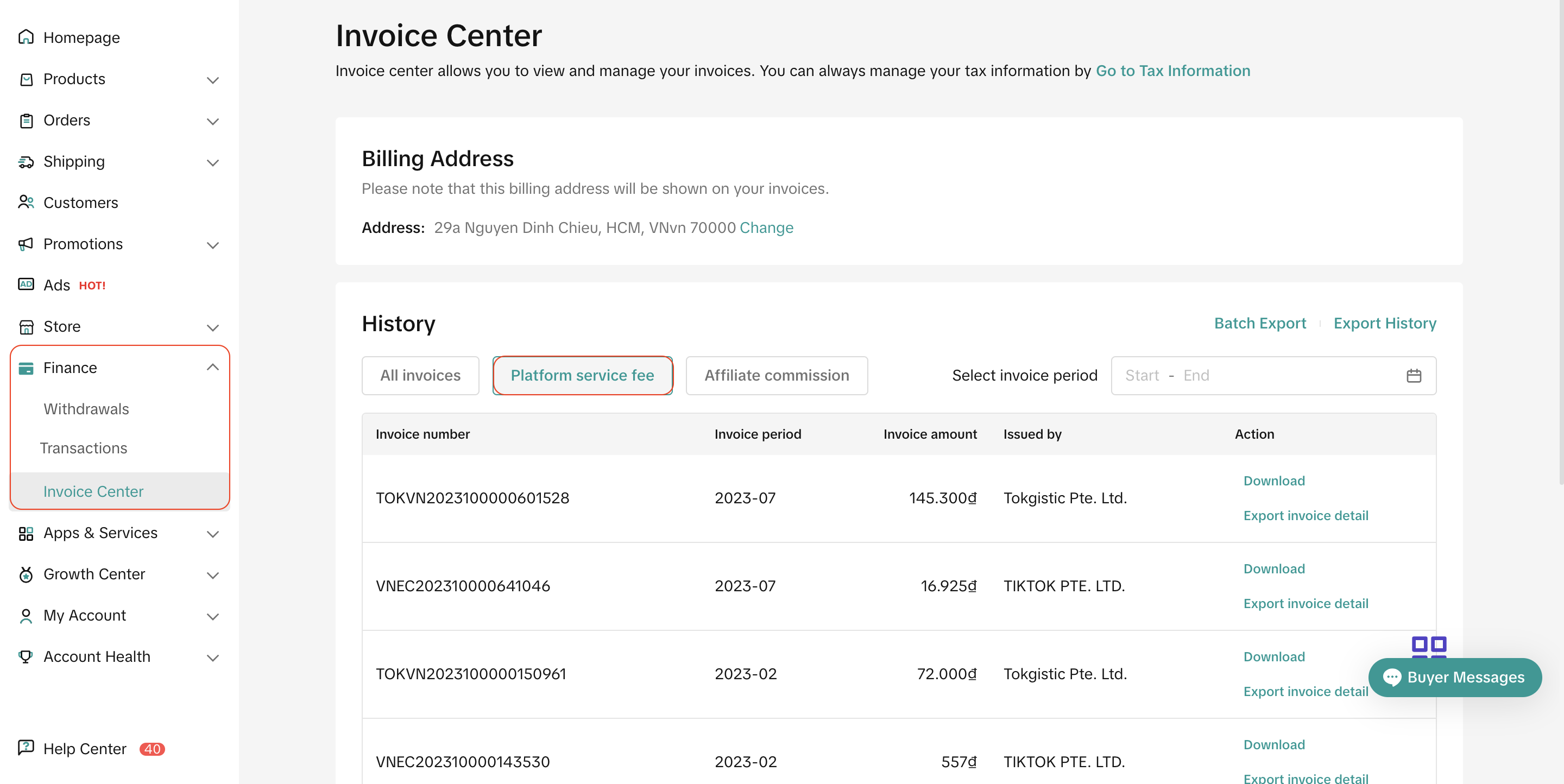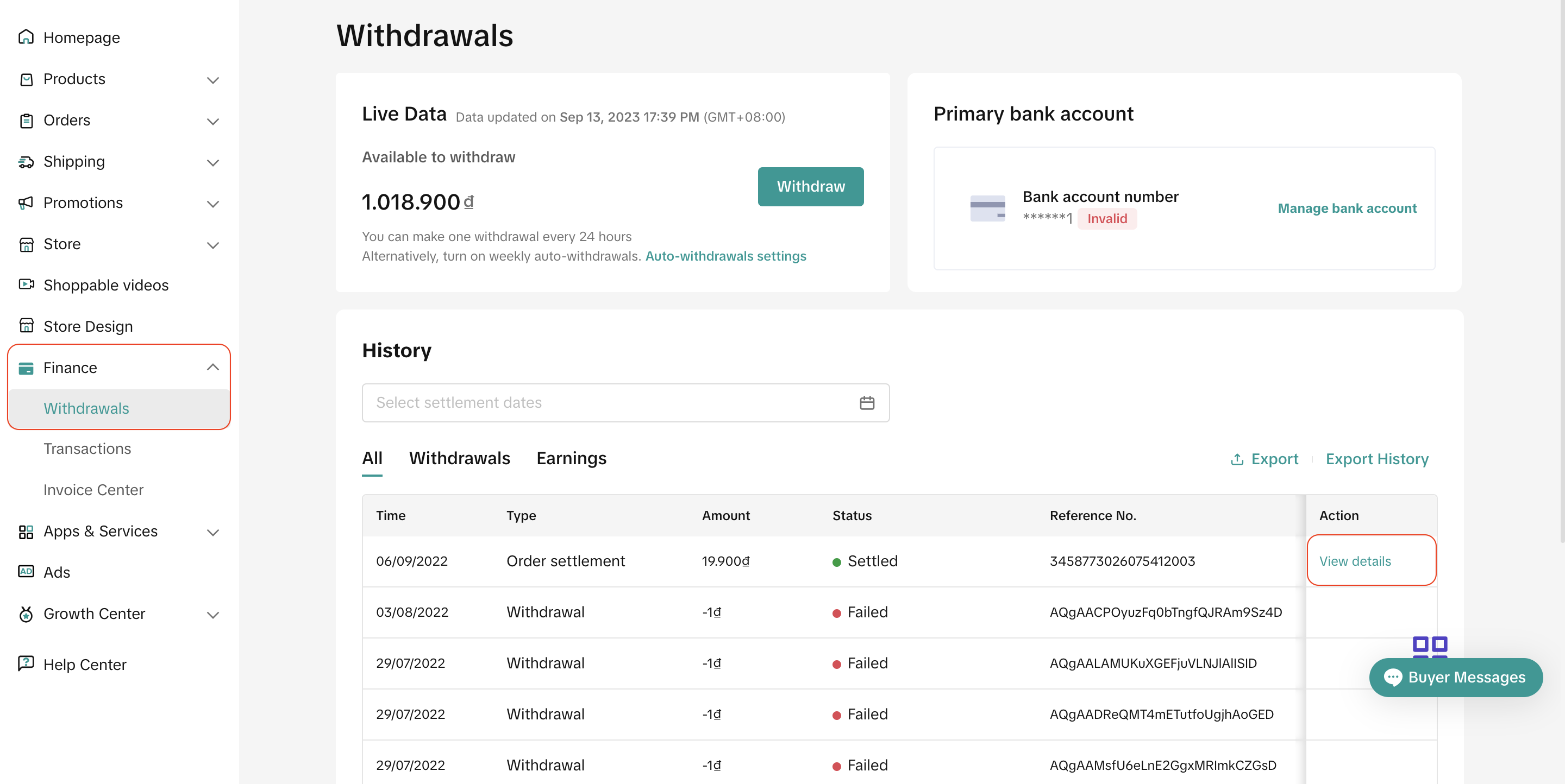 - 对于已经结算的订单,您可以在TikTok Shop卖家中心 -> 财务 -> 提现 -> 已结算 > 查看详情中查看交易费。
